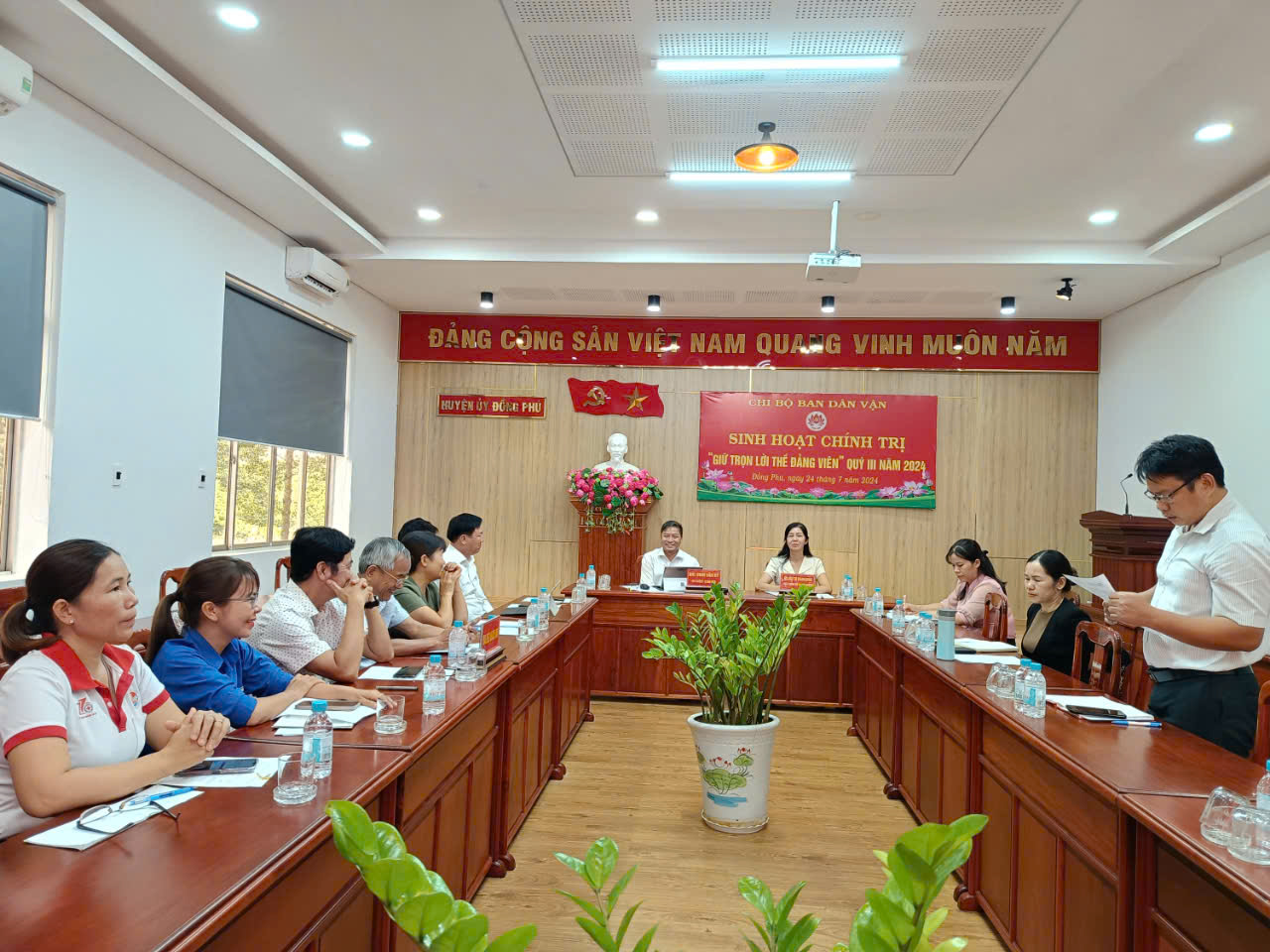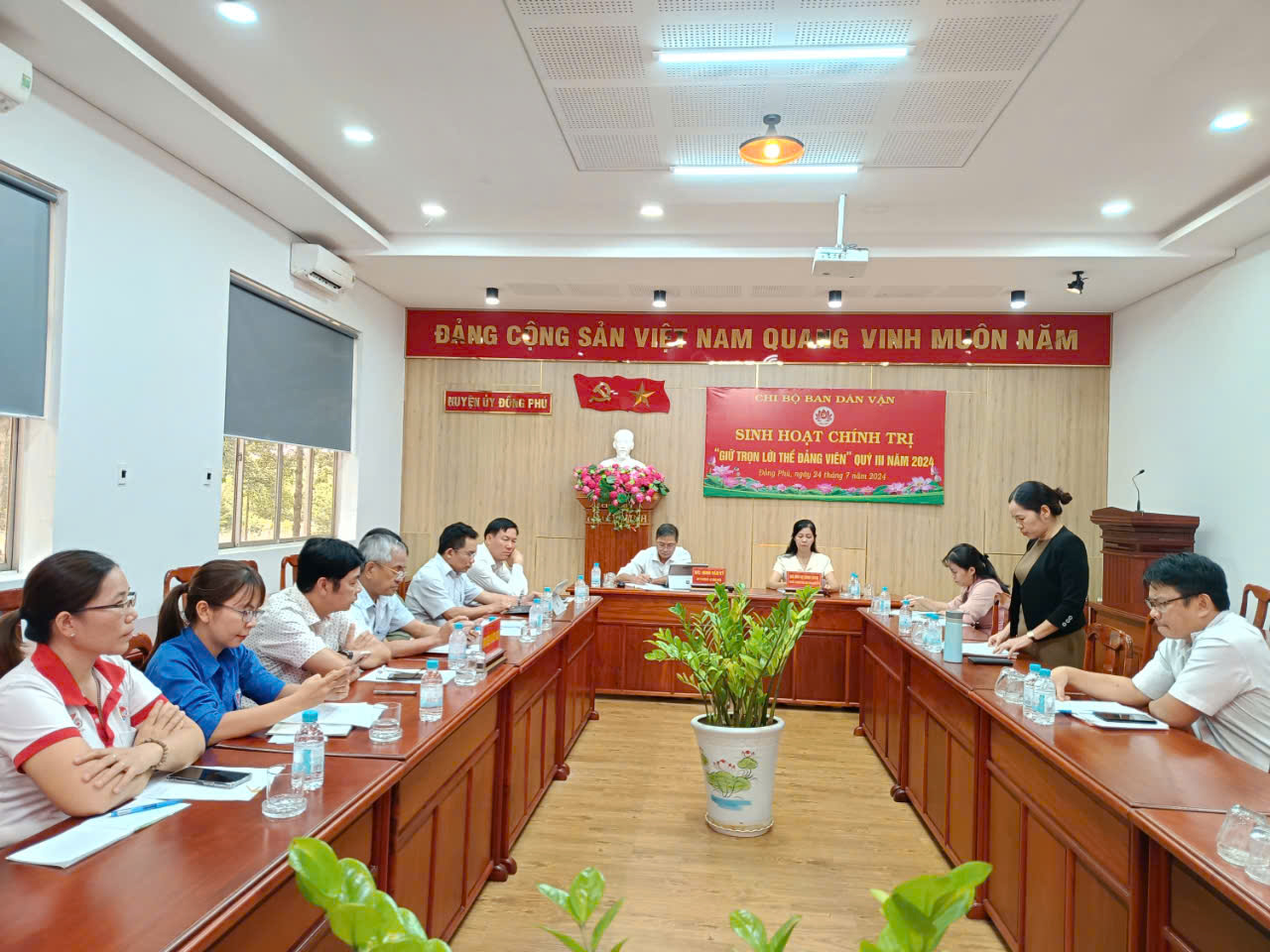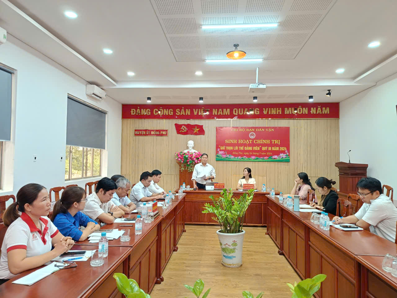 Sau phần kết luận của Bí thư chi bộ, các đảng viên tiếp tục sinh hoạt chính trị “Giữ trọn lời thề đảng viên”. Nội dung này, các đảng viên được xem video tuyên thệ 4 lời thề đảng viên và nghe chi bộ thông qua kế hoạch tổ chức đợt sinh hoạt chính trị “Giữ trọn lời thề đảng viên”.