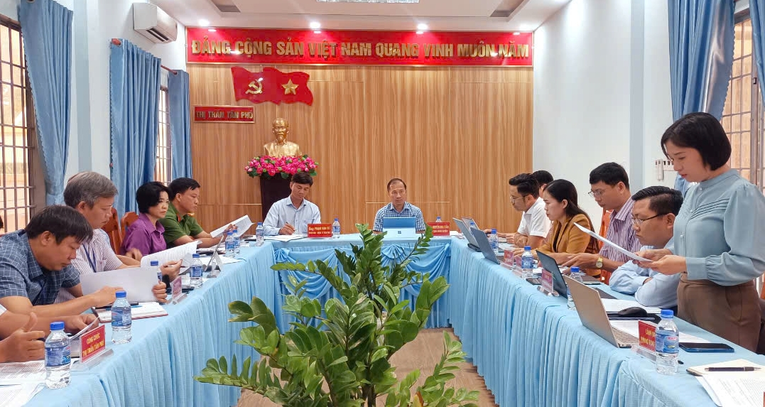 Báo cáo với chủ tịch UBND huyện, lãnh đạo UBND thị trấn Tân Phú cho biết: thời gian qua, cấp ủy, chính quyền đã triển khai quyết liệt nhiều giải pháp trong thực hiện nhiệm vụ, tuy nhiên vẫn còn một số tồn tại, vướng mắc chưa thể giải quyết hiệu quả, nhất là việc thực hiện các tiêu chí xây dựng đô thị loại IV; công tác quản lý và khai thác chợ Đồng Phú, quản lý các công trình, dự án, đất công; xét cấp mới giấy chứng nhận quyền sử dụng đất; những tồn tại về hạ tầng đô thị và văn hóa, giáo dục....