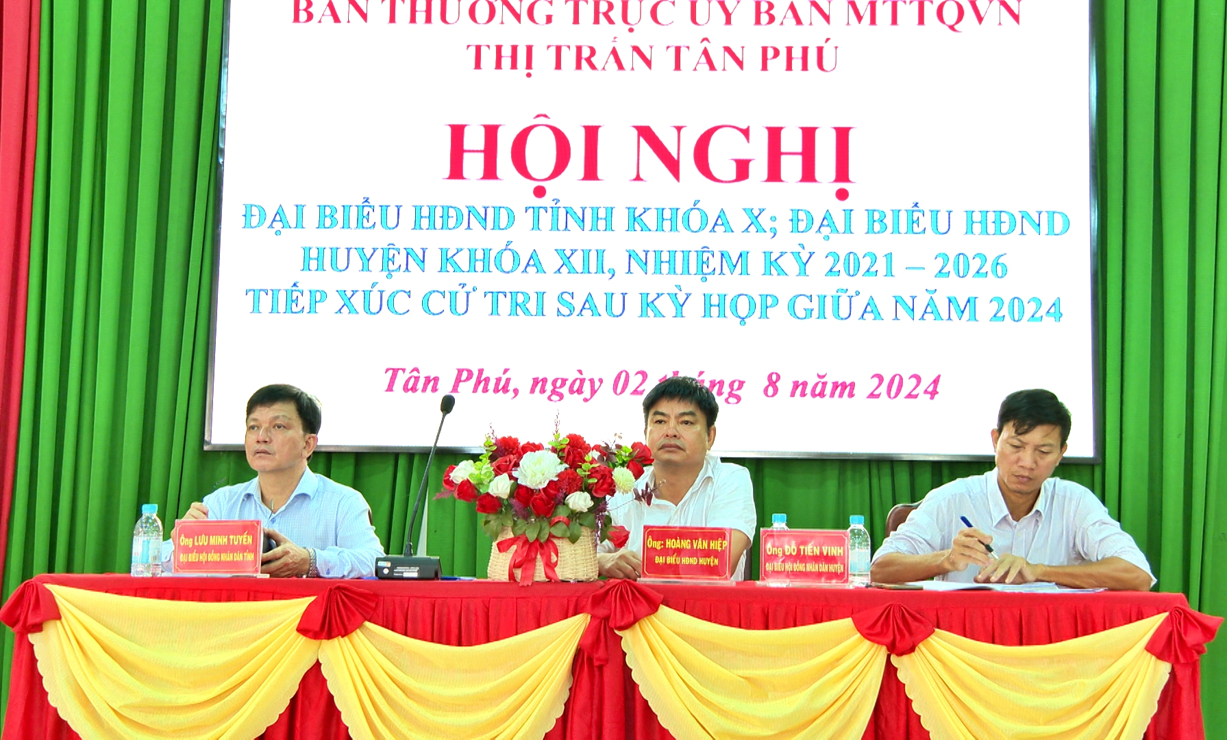 Phó bí thư thường trực Huyện uỷ, chủ tịch HĐND huyện Đinh Văn Kỹ; Uỷ viên Ban thường vụ Huyện uỷ, phó chủ tịch UBND huyện Nguyễn Thanh Phương cùng lãnh đạo một số cơ quan chuyên môn huyện; UBND thị trấn Tân Phú dự nắm bắt và trả lời các kiến nghị của cử tri.