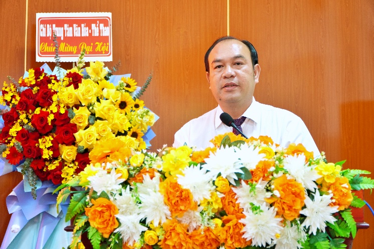 Tỉnh uỷ viên, Bí thư Huyện uỷ Nguyễn Tấn Hùng phát biểu chỉ đạo và tặng hoa chúc mừng đại hội