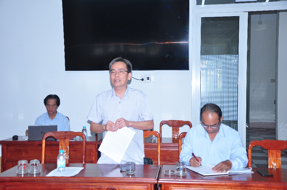 Phó bí thư thường trực Huyện ủy, Chủ tịch HĐND huyện Đinh Văn Kỹ phát biểu kết luận cuộc họp