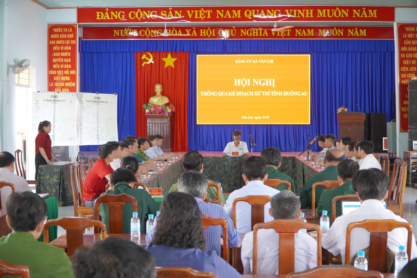 Diễn tập chiến đấu xã Tân Lợi trong khu vực phòng thủ năm 2024 gồm các nội dung: chuyển lực lượng vũ trang tự trạng thái sẵn sàng chiến đấu thường xuyên lên trạng thái sẵn sàng chiến đấu tăng cường, chuyển hoạt động của địa phương vào trạng thái có tình huống. Sau đó chuyển lên trạng thái sẵn sàng chiến đấu cao, chuyển hoạt động của địa phương vào tình trạng khẩn cấp về quốc phòng và xử trí tình huống A2.
