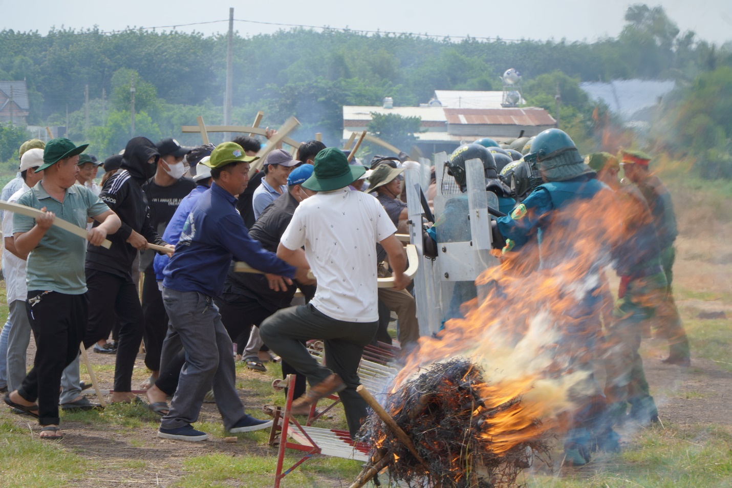 Phần diễn tập thực binh xử trí tình huống A2 chống biểu tình, bạo loạn