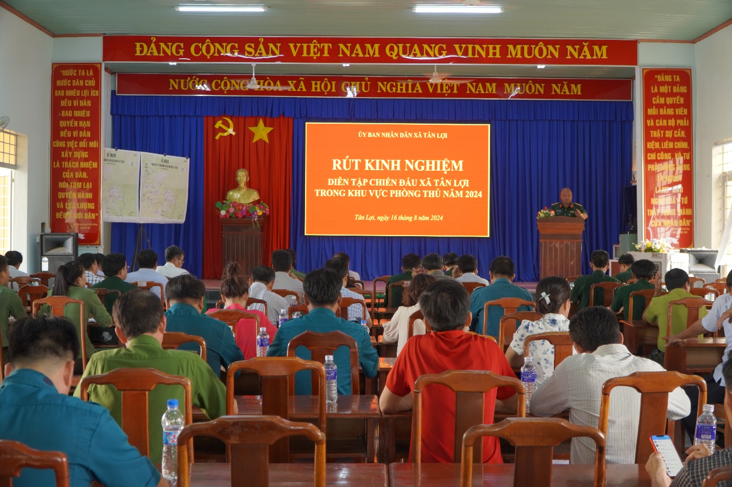 Ngày 16-8, huyện Đồng Phú đã tổ chức diễn tập chiến đấu xã Tân Lợi trong khu vực phòng thủ năm 2024. Dự theo dõi diễn tập có Tỉnh uỷ viên, Bí thư Huyện uỷ Nguyễn Quốc Dũng; lãnh đạo các cơ quan, ban, ngành, đoàn thể huyện; lãnh đạo Đảng uỷ, UBND, Chỉ huy trưởng, Trưởng công an các xã, thị trấn trên trong huyện.