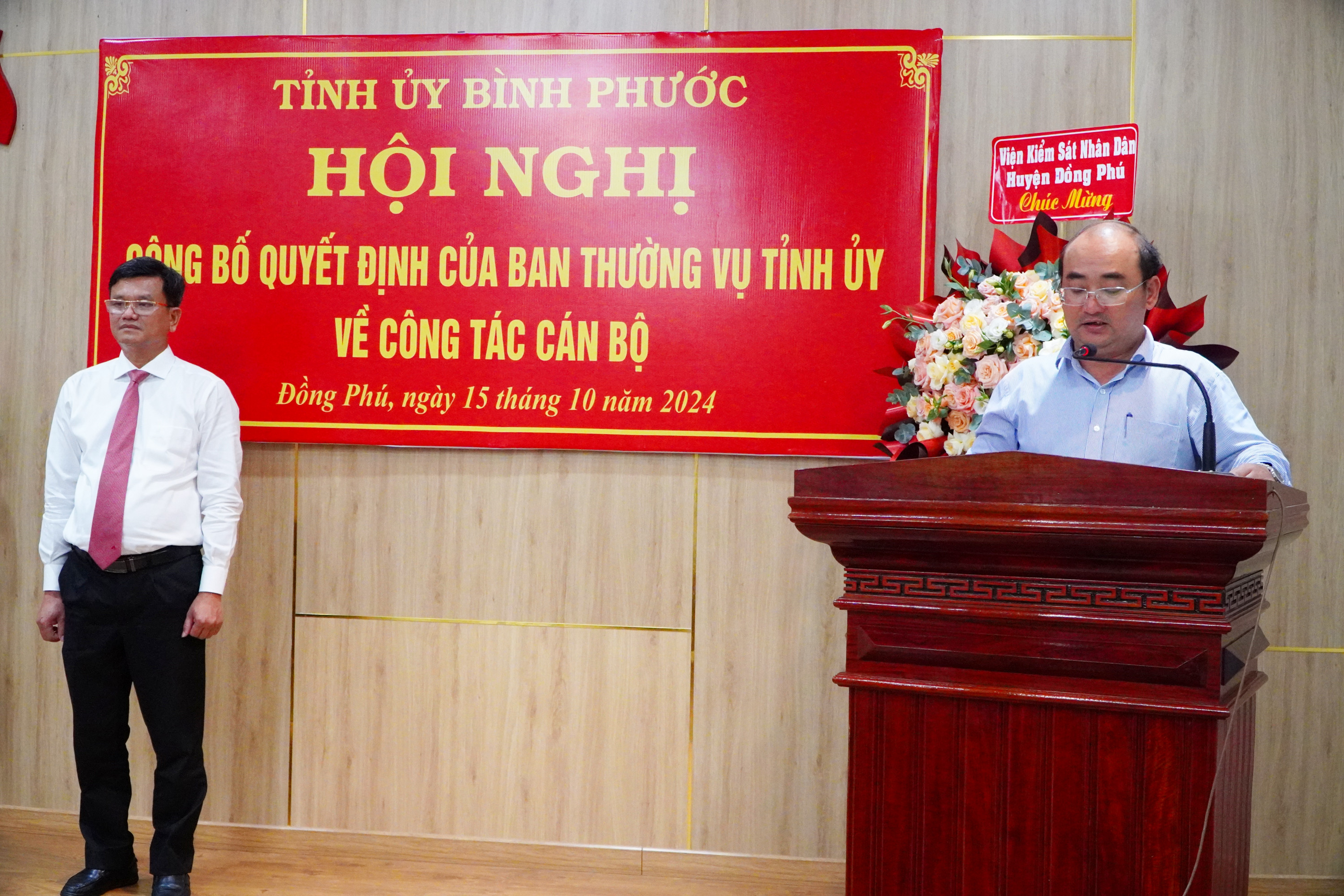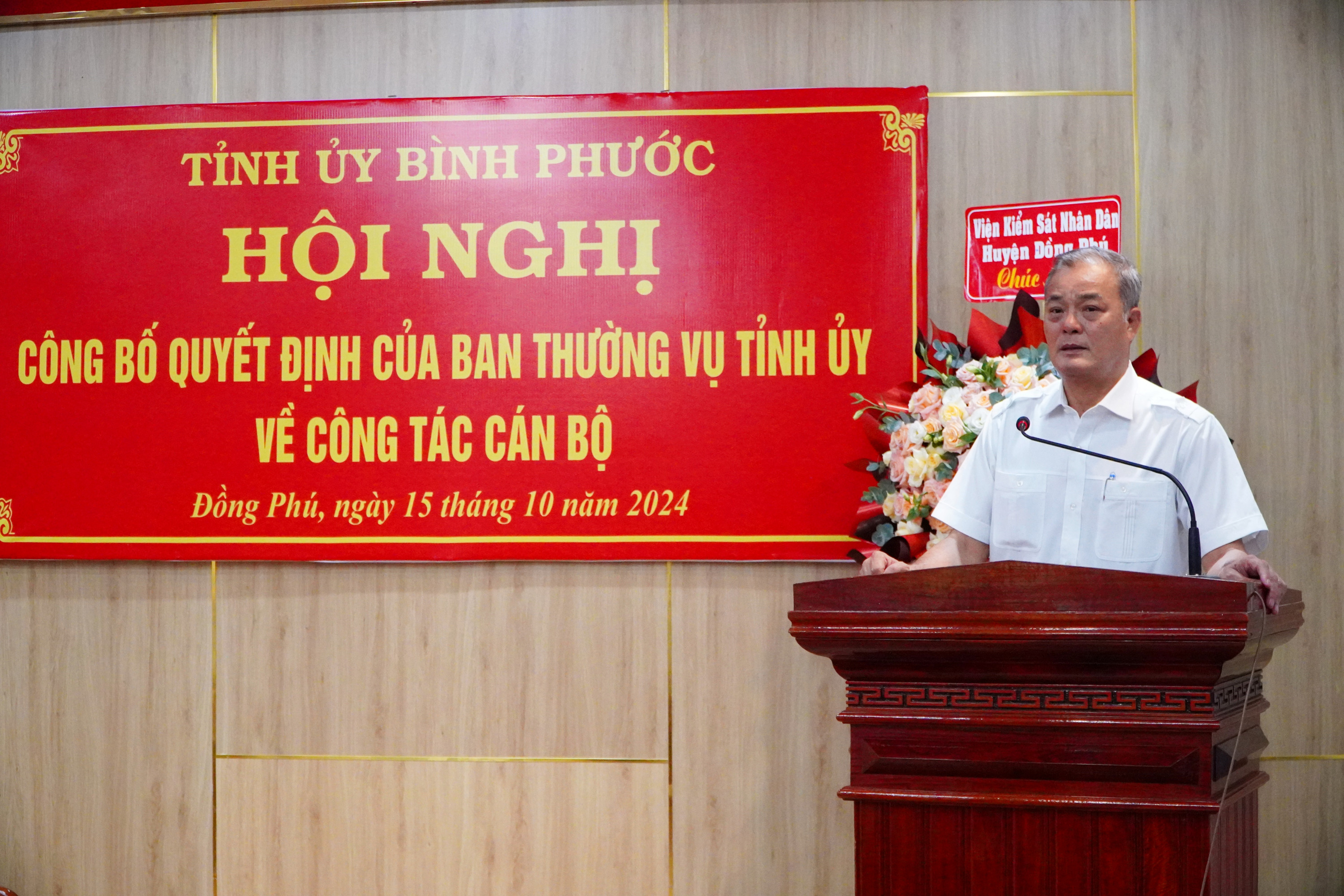Tại hội nghị, Trưởng Ban tổ chức Tỉnh ủy Nguyễn Hồng Trà đã trao quyết định của Ban thường vụ Tỉnh ủy điều động đồng chí Lê Văn Trân, Phó chủ nhiệm Ủy ban Kiểm tra Tỉnh ủy đến nhận công tác tại Ủy ban nhân dân, chỉ định tham gia Ban chấp hành, Ban thường vụ và giữ chức vụ Phó bí thư Huyện ủy Đồng Phú nhiệm kỳ 2020-2025; giới thiệu bầu giữ chức vụ chủ tịch UBND huyện Đồng Phú nhiệm kỳ 2021-2026.