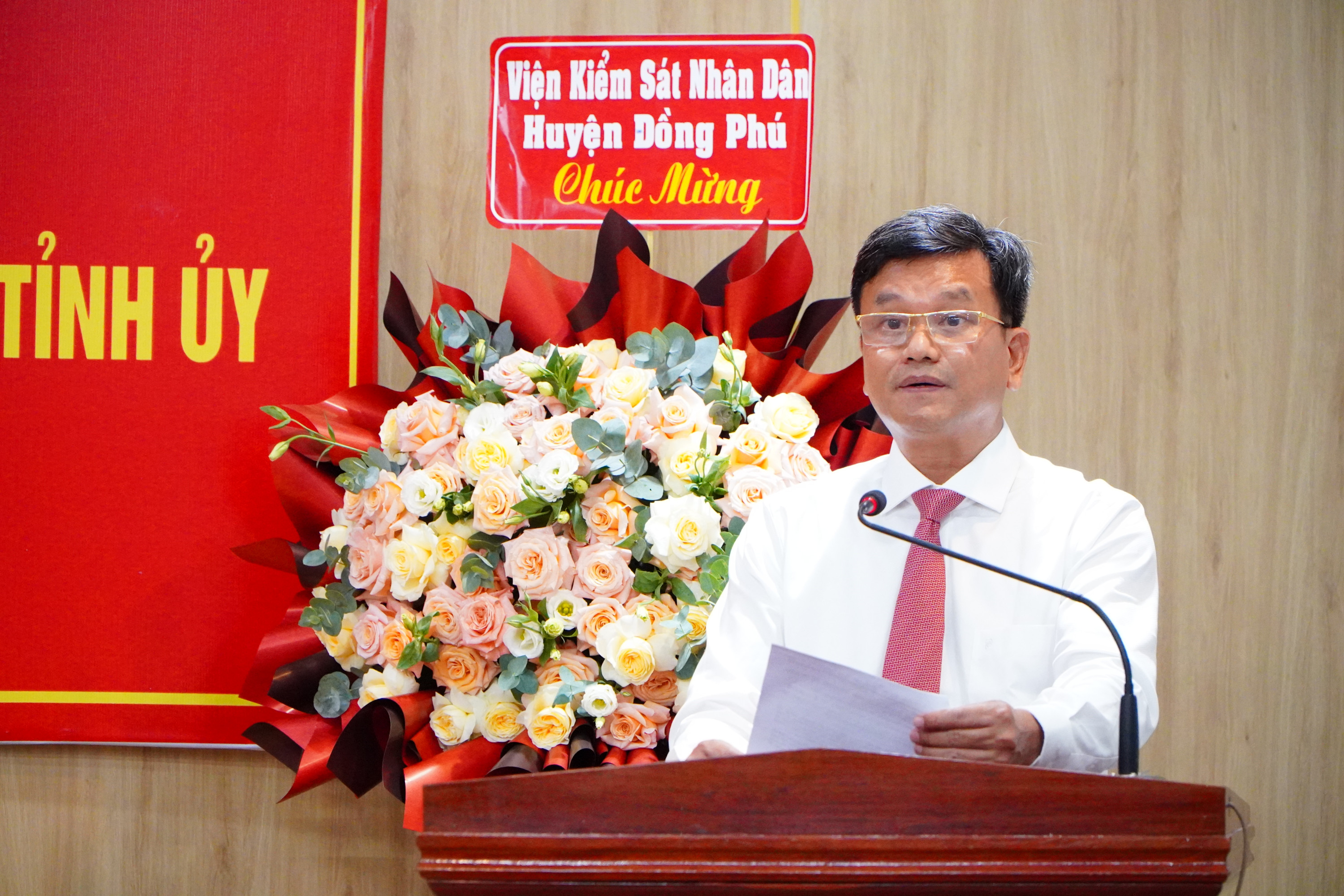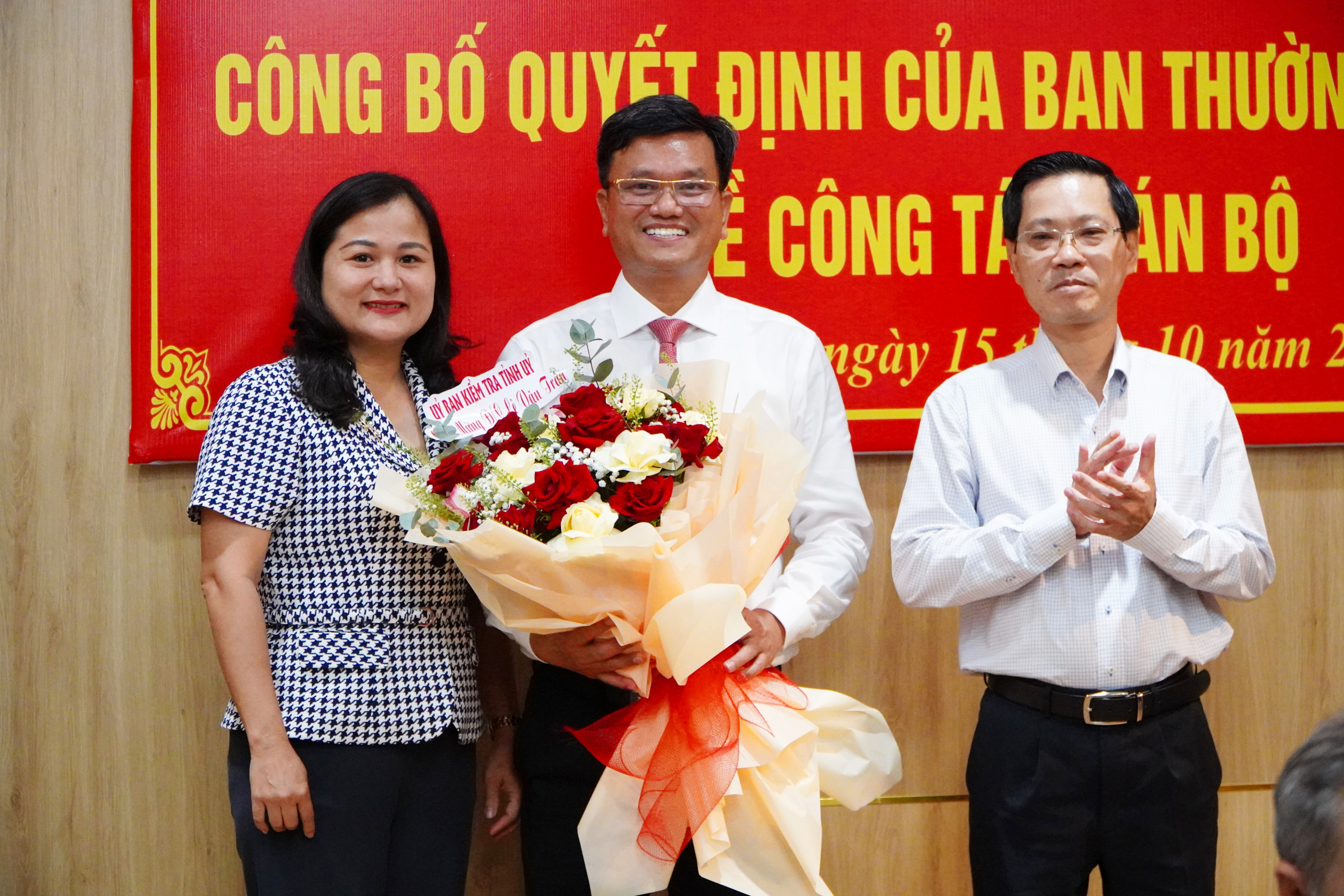 Lãnh đạo Ủy ban Kiểm tra Tỉnh ủy tặng hoa chúc mừng tân Phó bí thư Huyện ủy Đồng Phú Lê Văn Trân