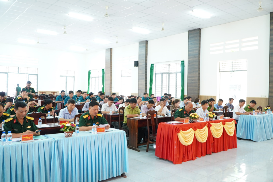 Dự hội nghị có lãnh đạo các cơ quan, ban, ngành đoàn thể huyện; lãnh đạo Đảng uỷ và Ban CHQS các xã, thị trấn.