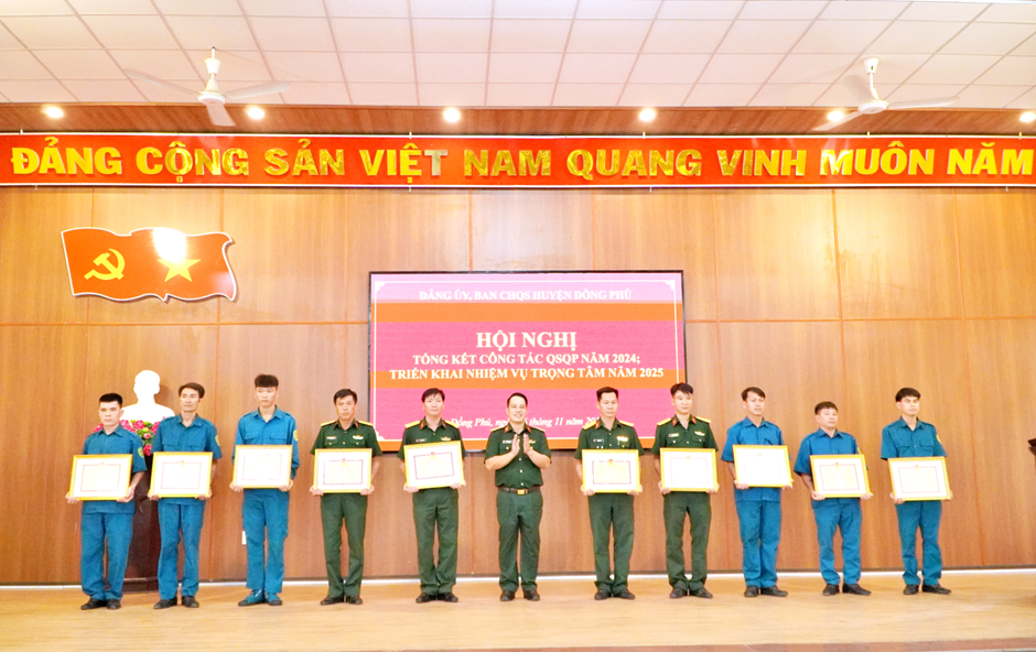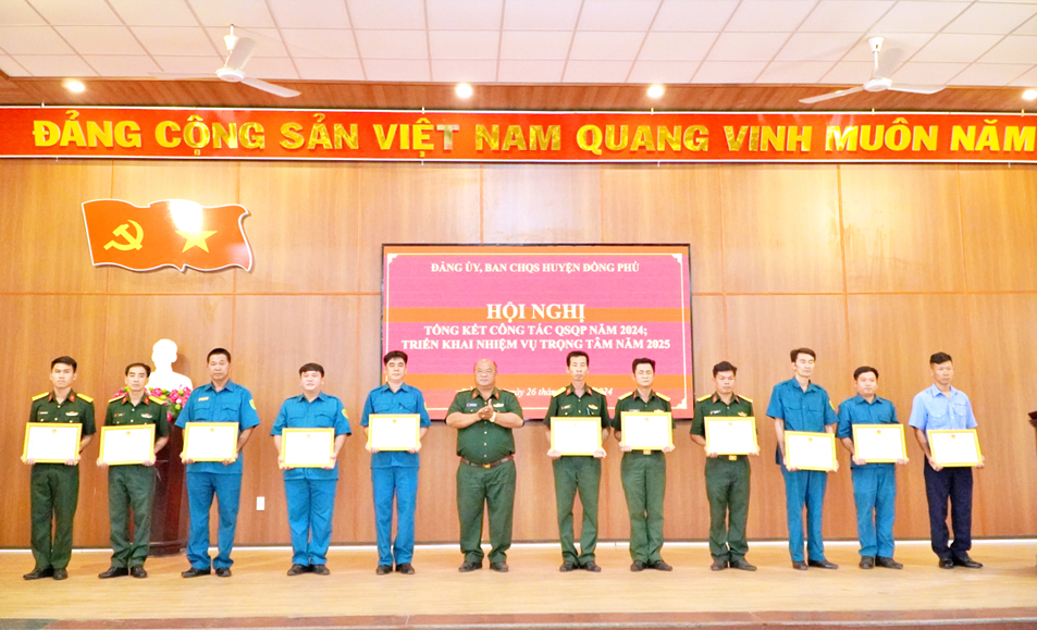 Dịp này, UBND huyện Đồng Phú đã tặng giấy khen cho 5 tập thể, 10 cá nhân có thành tích trong phong trào thi đua quyết thắng; Ban CHQS huyện tặng danh hiệu chiến sĩ thi đua cơ sở cho 2 cá nhân, tặng danh hiệu chiến sĩ tiên tiến cho 1 cá nhân và tặng giấy khen cho 3 tập thể, 5 cá nhân có thành tích trong phong trào thi đua quyết thắng năm 2024.