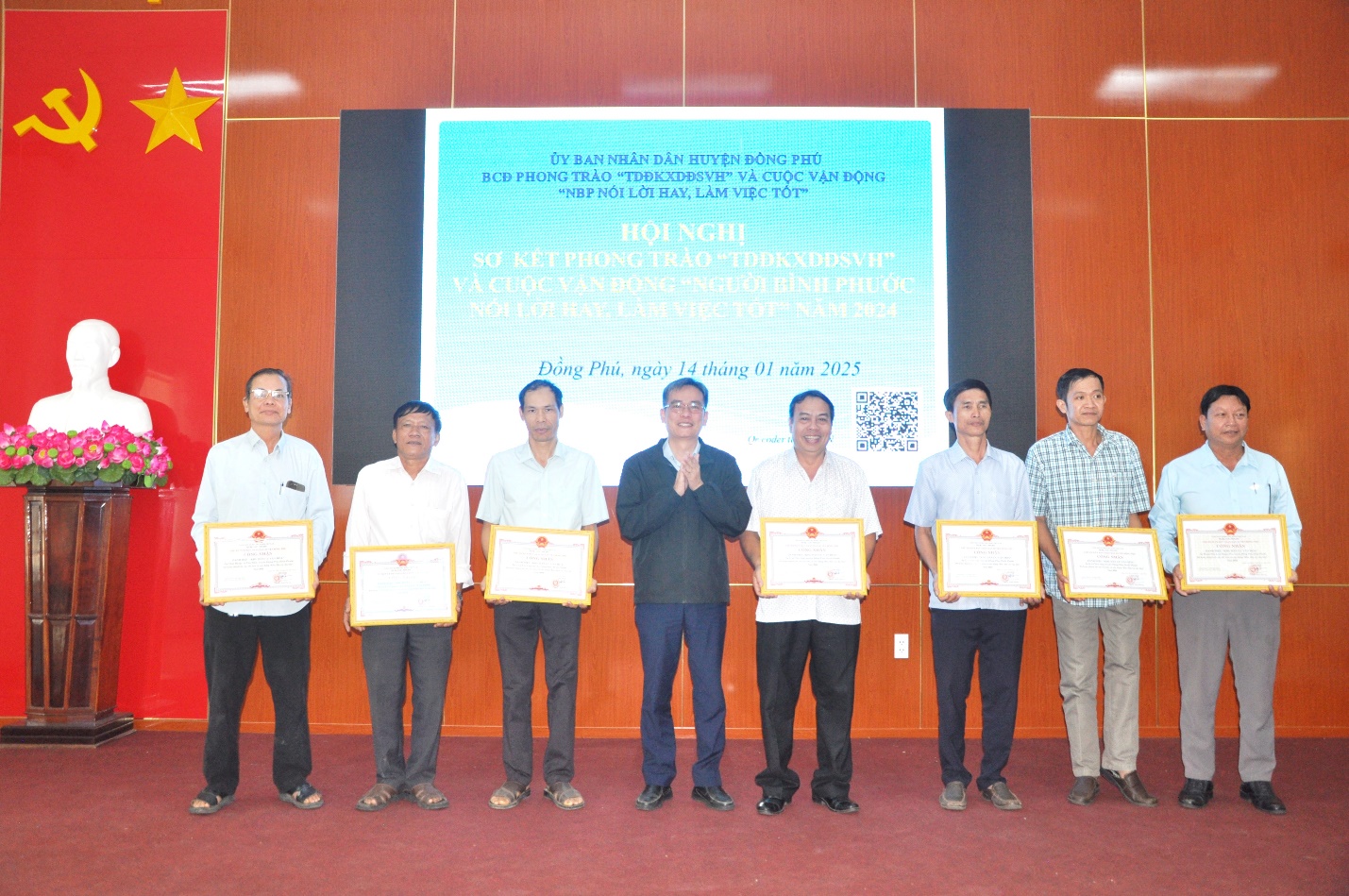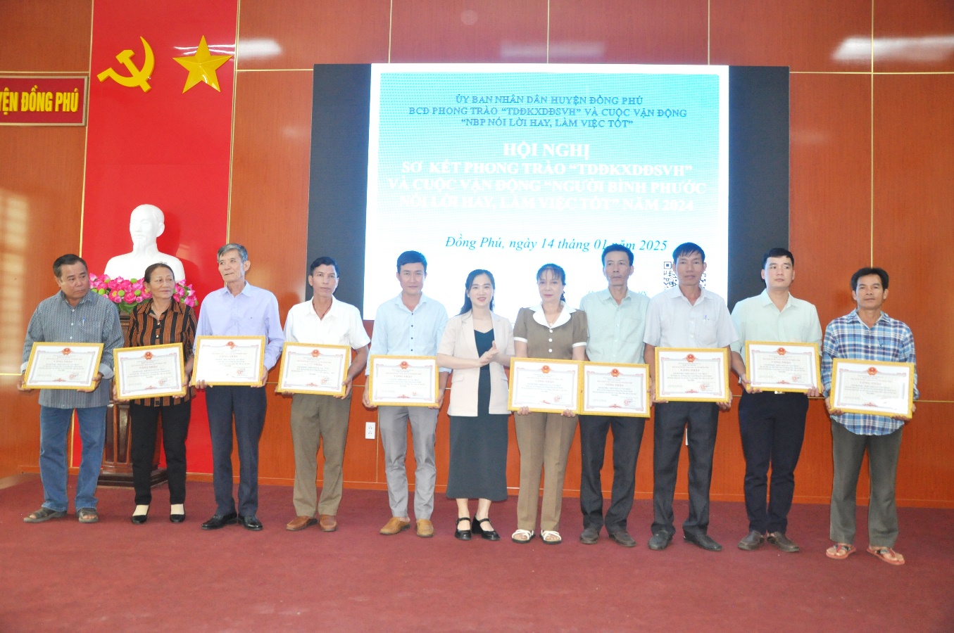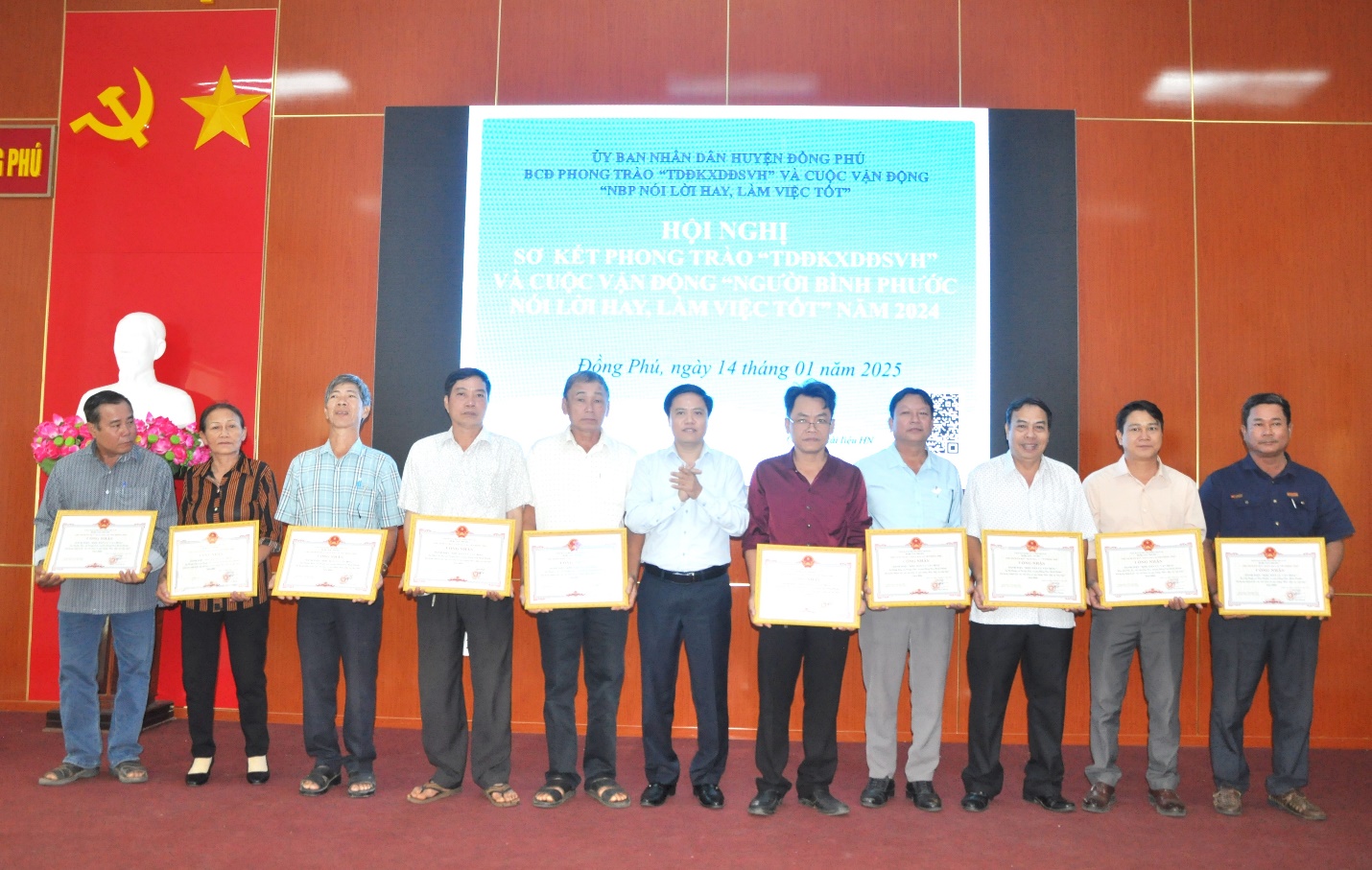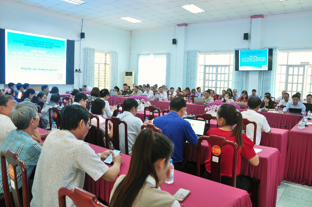 Năm 2024, Phong trào “Toàn dân đoàn kết xây dựng đời sống văn hóa” và Cuộc vận động “Người Bình Phước nói lời hay, làm việc tốt” được các cấp, các ngành và nhân dân trong huyện tích cực hưởng ứng với nhiều cách làm hay, sáng tạo, góp phần phần nâng cao đời sống vật chất, tinh thần của nhân dân, thúc đẩy kinh tế - xã hội phát triển, an ninh chính trị, trật tự an toàn xã hội giữ vững ổn định.