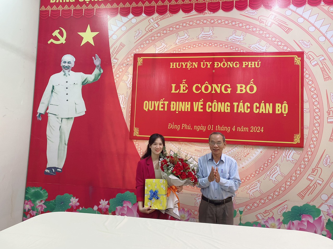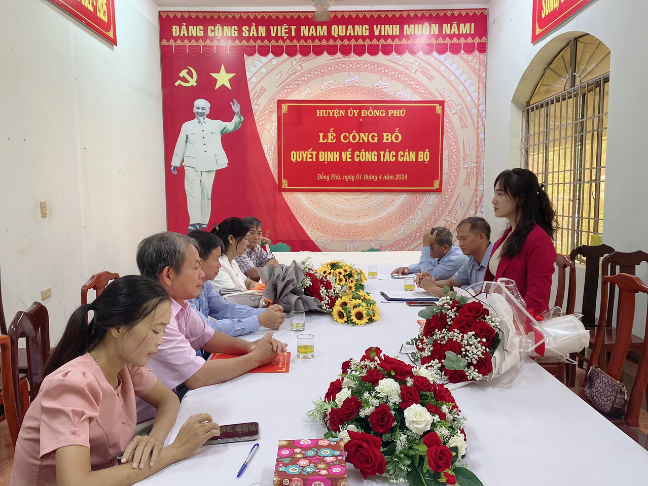 Tại buổi lễ, Ban Tổ chức Huyện ủy thông qua Quyết định về việc cán bộ nghỉ hưu trước tuổi đối với đồng chí Lưu Văn Thìn, Huyện ủy viên, Phó chủ tịch UBMTTQ huyện. Theo đó, đồng chí Lưu Văn Thìn được nghỉ hưu trước tuổi để hưởng chế độ BHXH từ ngày 1/4/2024. Đồng thời thông qua Quyết định về việc điều động đồng chí Nguyễn Thị Vân Anh, Huyện ủy viên, Phó trưởng Ban tổ chức Huyện ủy đến nhận công tác tại Ủy ban MTTQ huyện kể từ ngày1/4/2024 để giới thiệu hiệp thương giữ chức Phó Chủ tịch Ủy ban MMTQ huyện nhiệm kỳ 2019-2024.