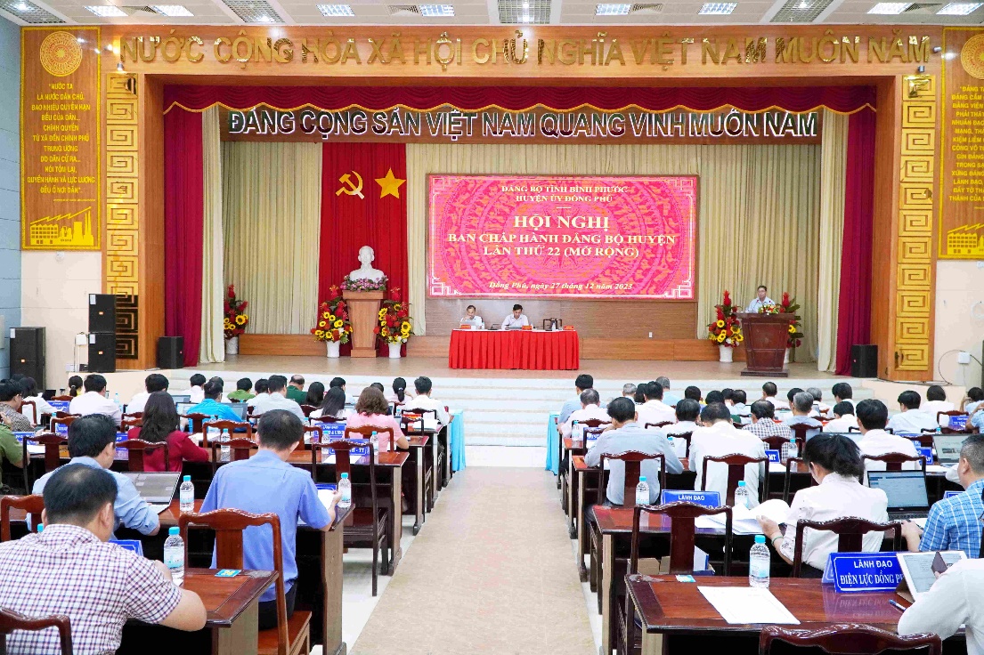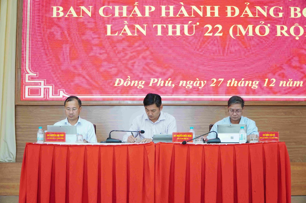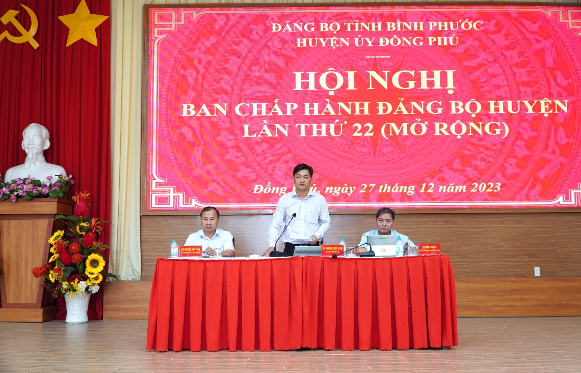 Chiều cùng ngày, Huyện uỷ Đồng Phú đã tổ chức hội nghị cán bộ chủ chốt nhằm thực hiện quy trình giới thiệu nhân đề nghị chỉ định bổ sung 1 uỷ viên Ban chấp hành Đảng bộ huyện khoá XII, nhiệm kỳ 2024 và hội nghị Ban chấp hành Đảng bộ huyện để lấy phiếu tín nhiệm đối với các đồng chí uỷ viên Ban thường vụ Huyện uỷ.