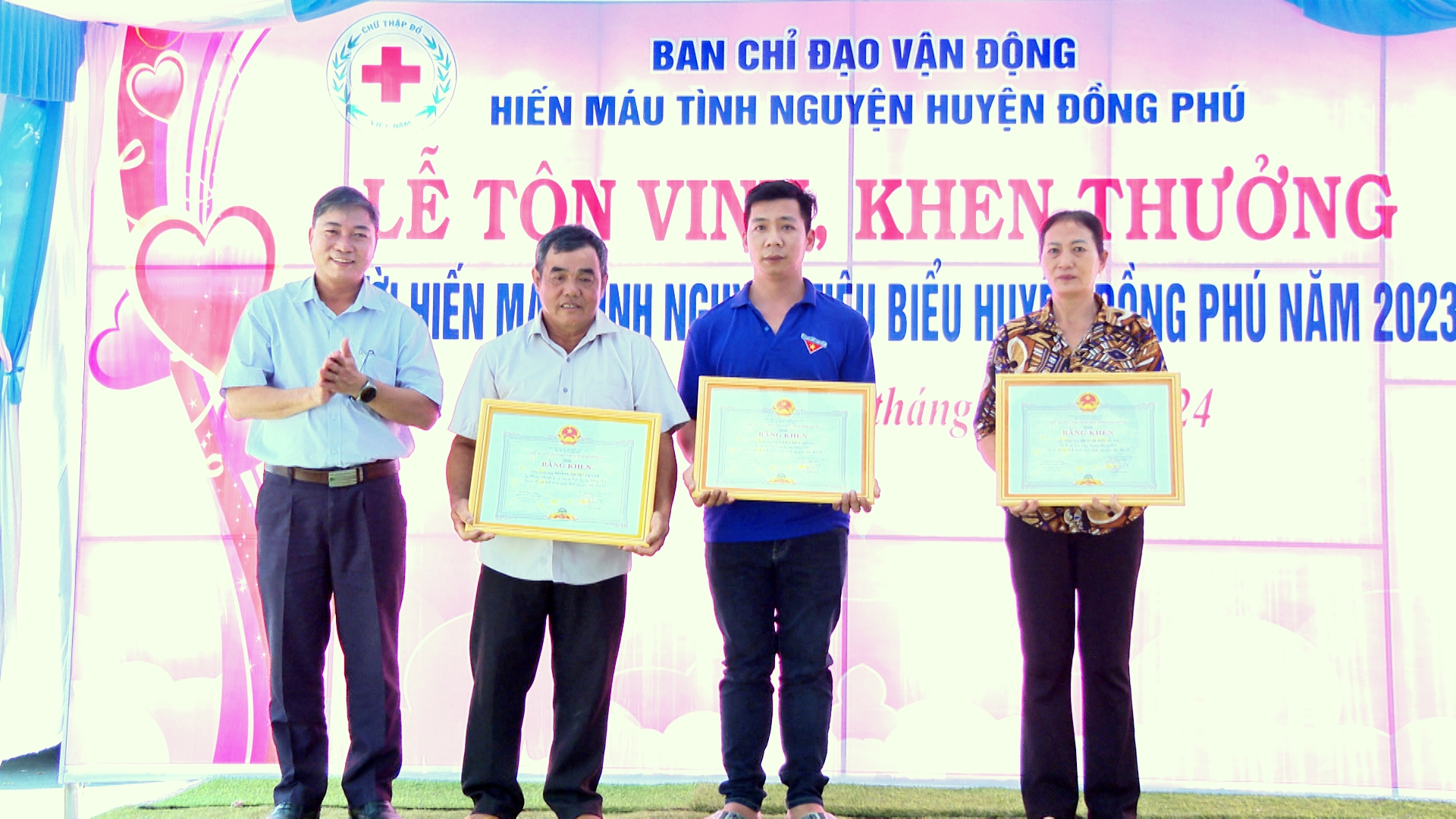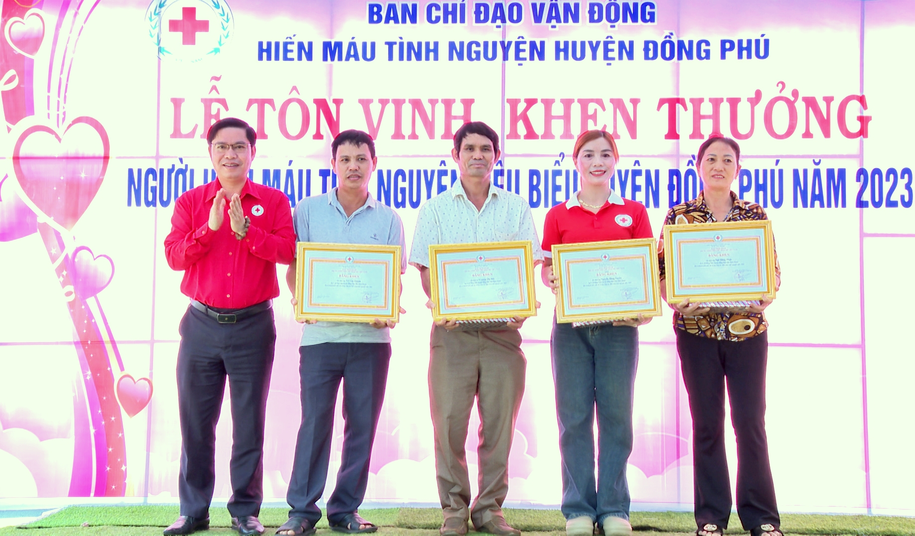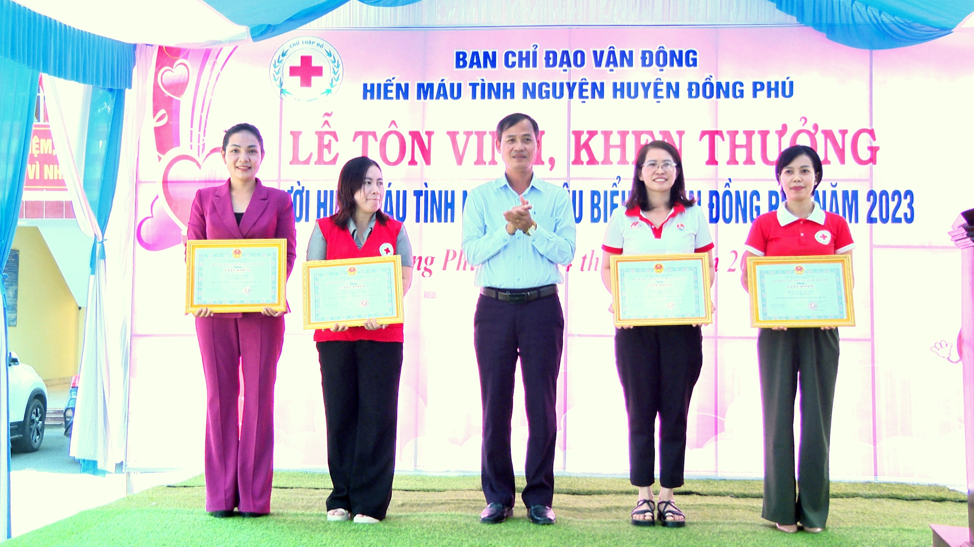 Tại buổi lễ, Ban tổ chức đã tôn vinh và trao tặng bằng khen, giấy khen của các cấp, các ngành cho những tập thể, gia đình, cá nhân tiêu biểu trong công tác hiến máu và vận động hiến máu tình nguyện năm 2023.