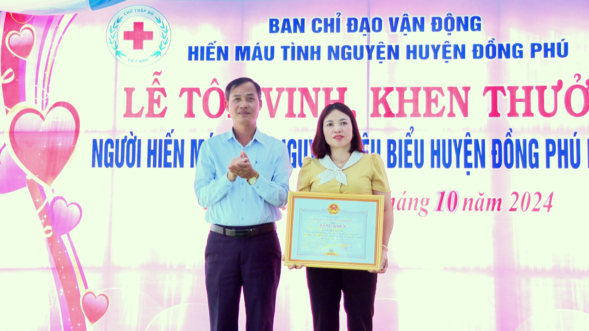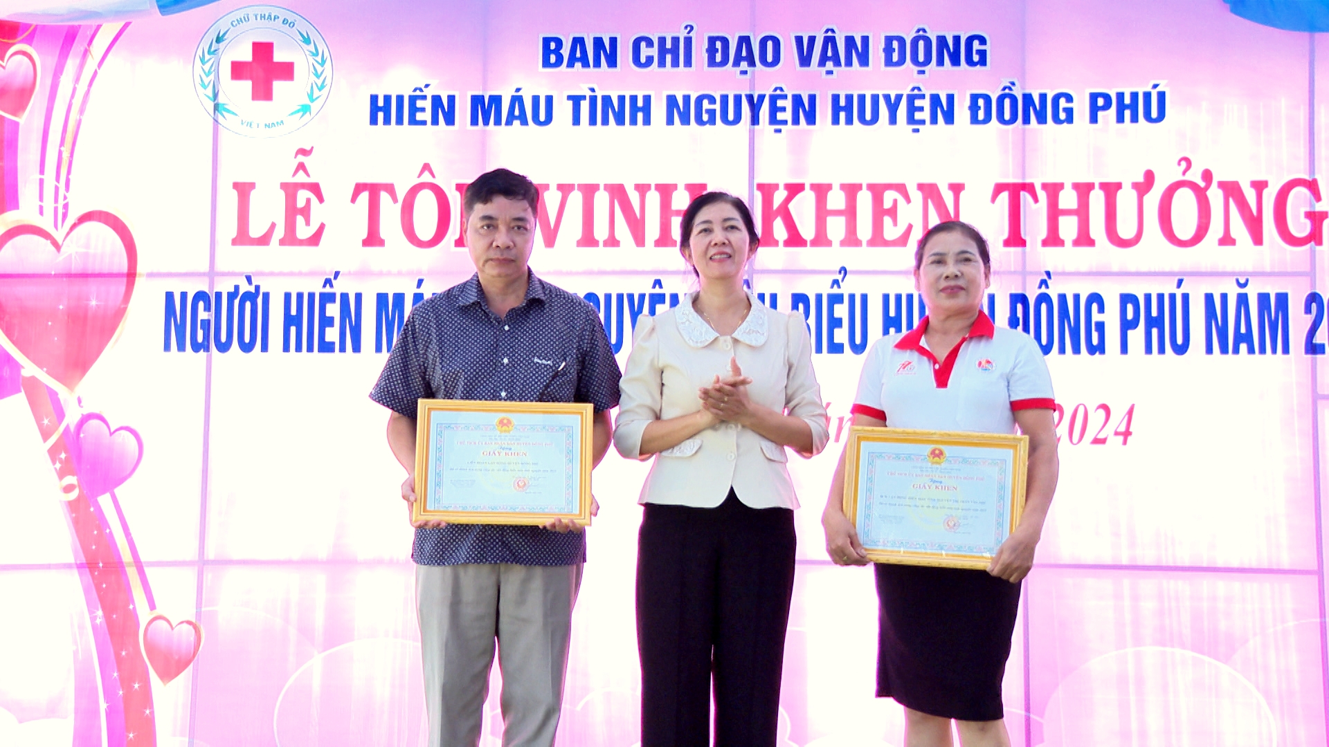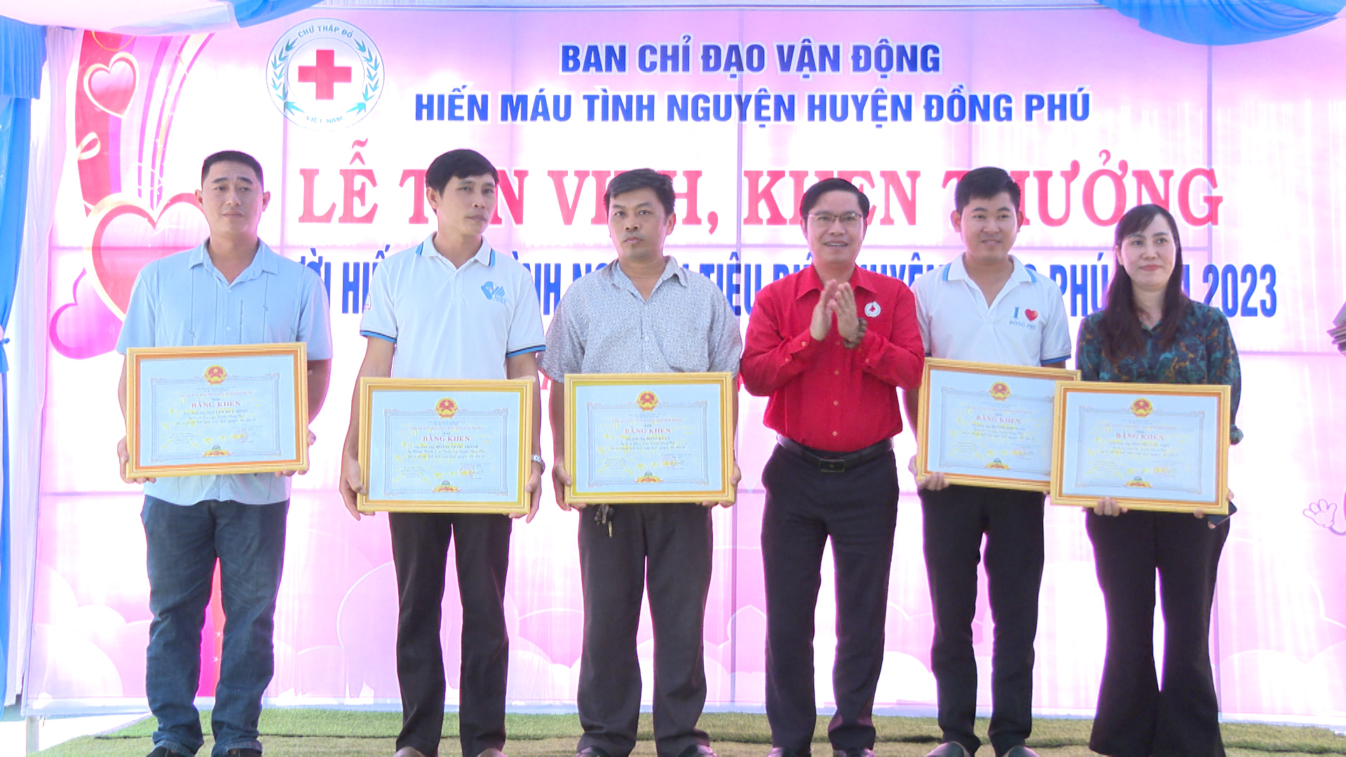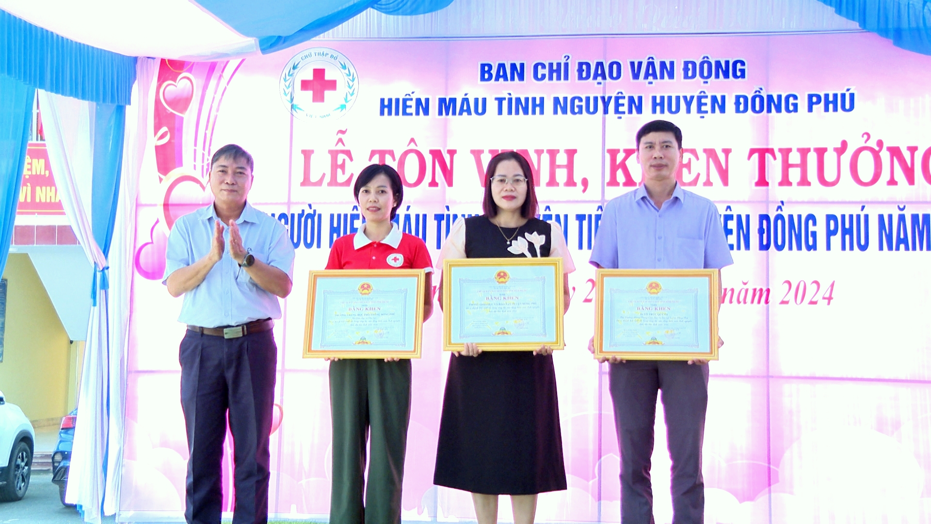 Tại buổi lễ, Ban tổ chức đã tôn vinh và trao tặng bằng khen, giấy khen của các cấp, các ngành cho những tập thể, gia đình, cá nhân tiêu biểu trong công tác hiến máu và vận động hiến máu tình nguyện năm 2023.