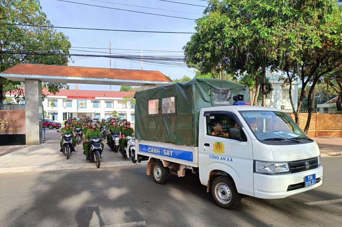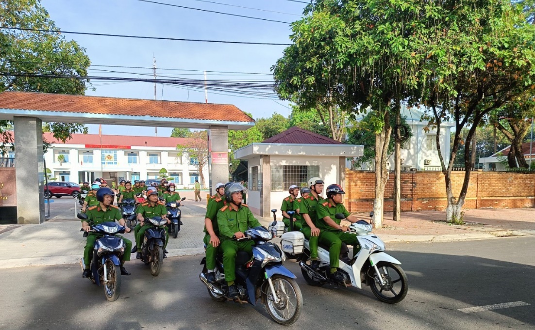 Ngay sau buổi lễ, toàn bộ lực lượng công an huyện đã diều hành từ Trung tâm hành chính huyện dọc theo tuyến đường ĐT 741 đến xã Tân Tiến và Tân Lập với quyết tâm hoàn thành mọi nhiệm vụ theo kế hoạch đề ra.