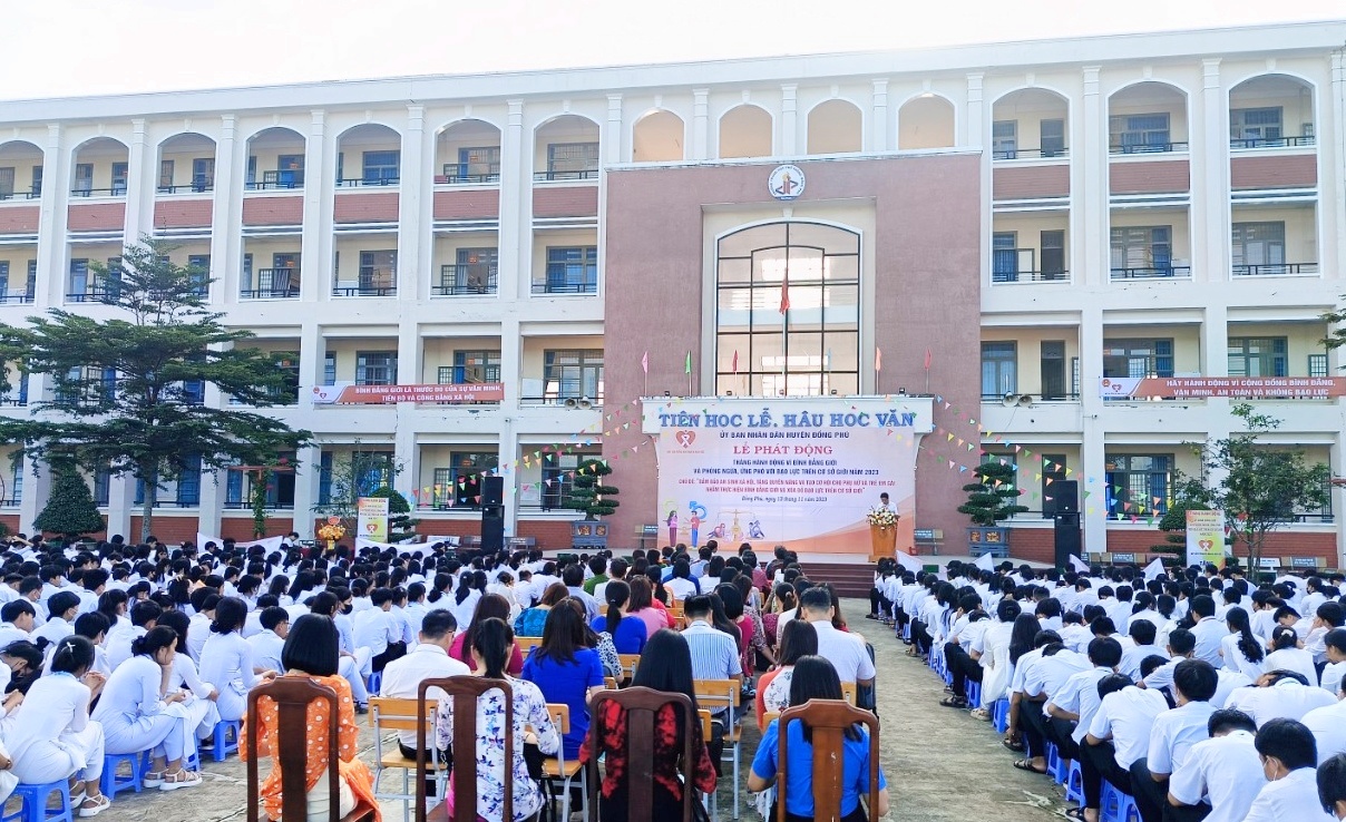 Với chủ đề “Đảm bảo an sinh xã hội, tăng quyền năng và tạo cơ hội cho phụ nữ và trẻ em gái nhằm thực hiện bình đẳng giới và xóa bỏ bạo lực trên cơ sở giới”, sáng 13-11, tại Trường THPT Đồng Phú, UBND huyện Đồng Phú đã tổ chức Lễ phát động Tháng hành động vì bình đẳng giới và phòng ngừa, ứng phó với bạo lực trên cơ sở giới năm 2023.