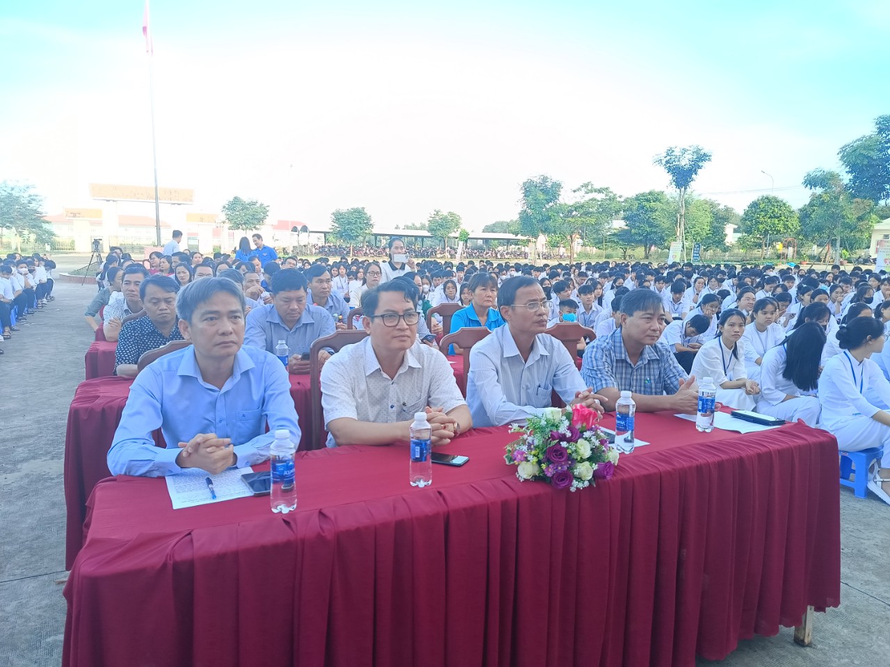 Lãnh đạo huyện cùng cán bộ, giáo viên và học sinh Trường THPT Đồng Phú dự lễ phát động