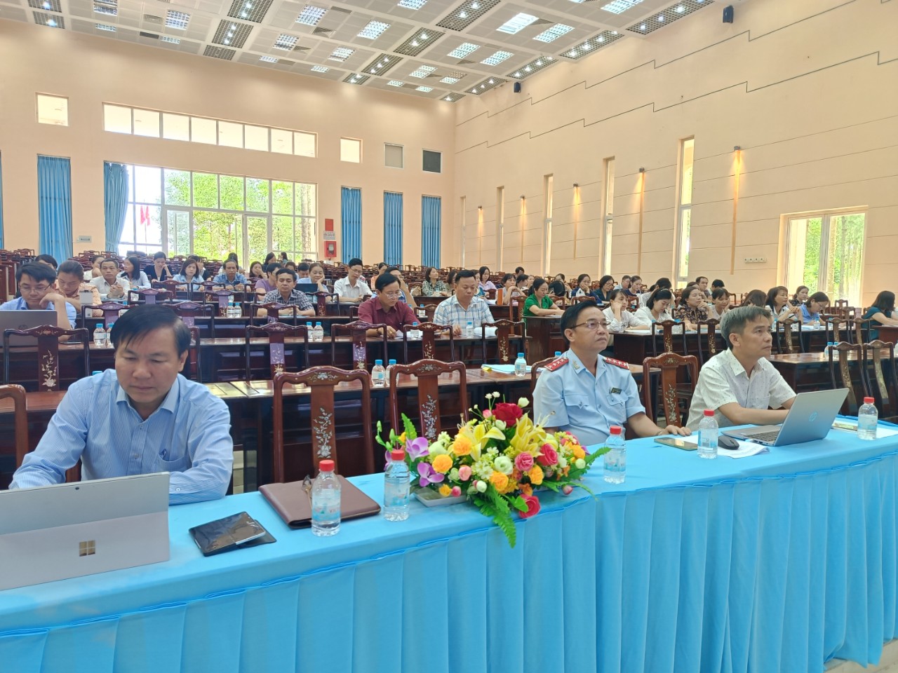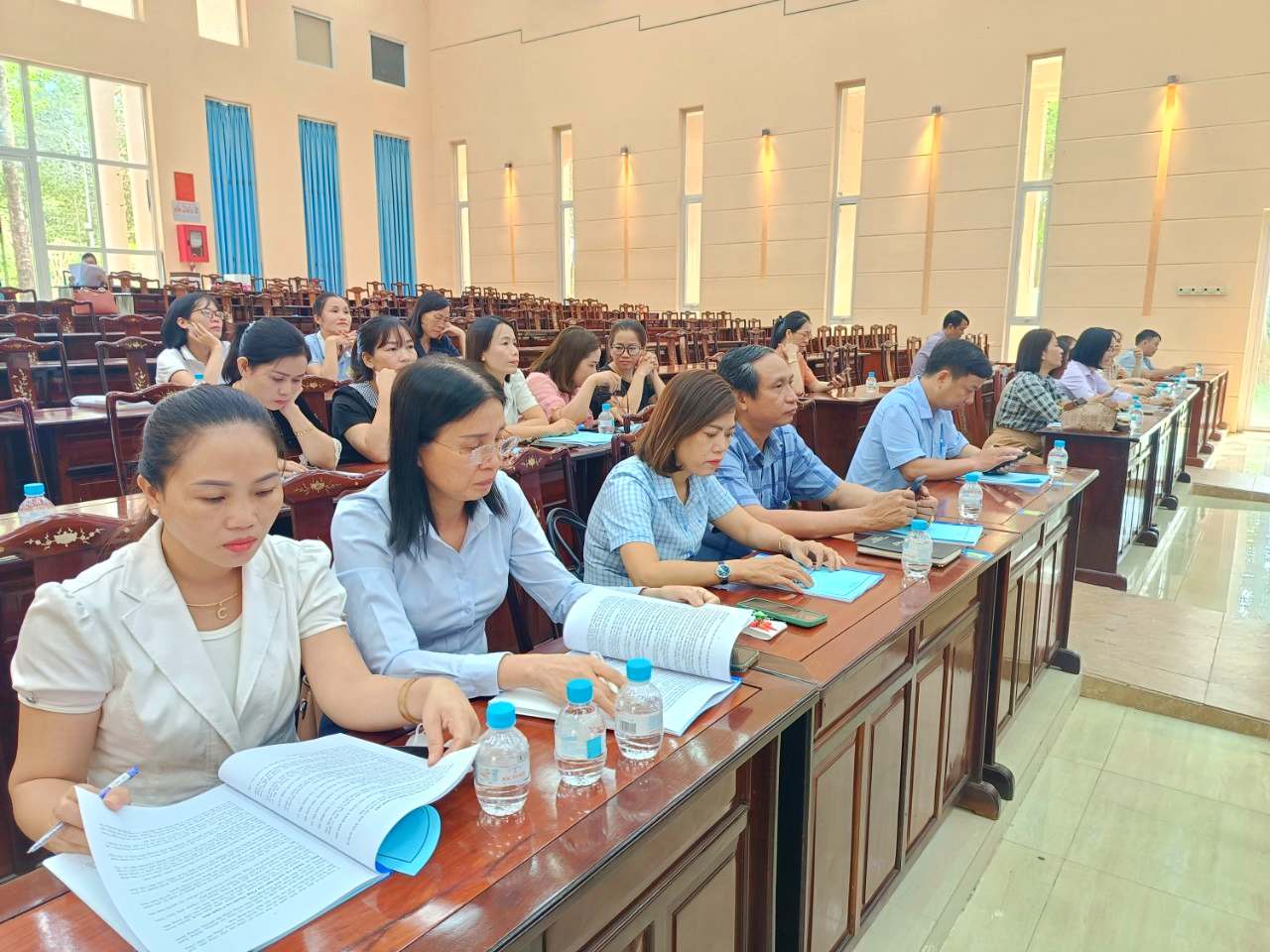 Ủy viên Ban thường vụ Huyện ủy, Phó chủ tịch UBND huyện Nguyễn Thanh Phương; thủ trưởng các cơ quan chuyên môn, đơn vị sự nghiệp thuộc UBND huyện; hiệu trưởng và kế toán các trường học; đại diện lãnh đạo UBND và công chức tư pháp - hộ tịch, địa chính - xây dựng các xã, thị trấn tham gia hội nghị.