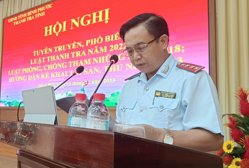 Chánh Thanh tra tỉnh Bình Phước Phạm Văn Thuấn phổ biến những nội dung quan trọng, điểm mới của các Luật