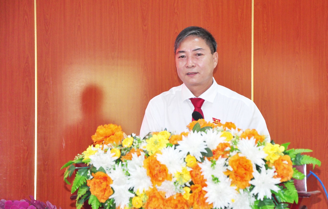 Phó bí thư thường trực Huyện ủy, Chủ tịch HĐND huyện Đinh Văn Kỹ phát biểu bế mạc kỳ họp