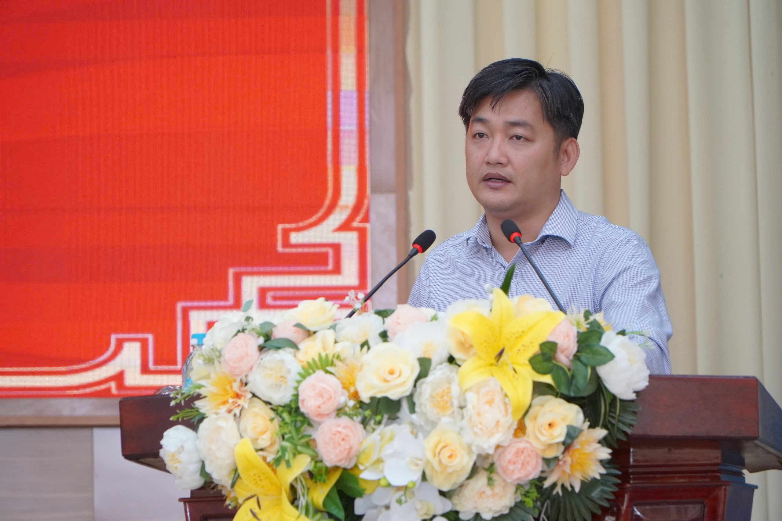 Tỉnh ủy viên, Bí thư Huyện ủy Đồng Phú Nguyễn Quốc Dũng phát biểu khai mạc hội nghị