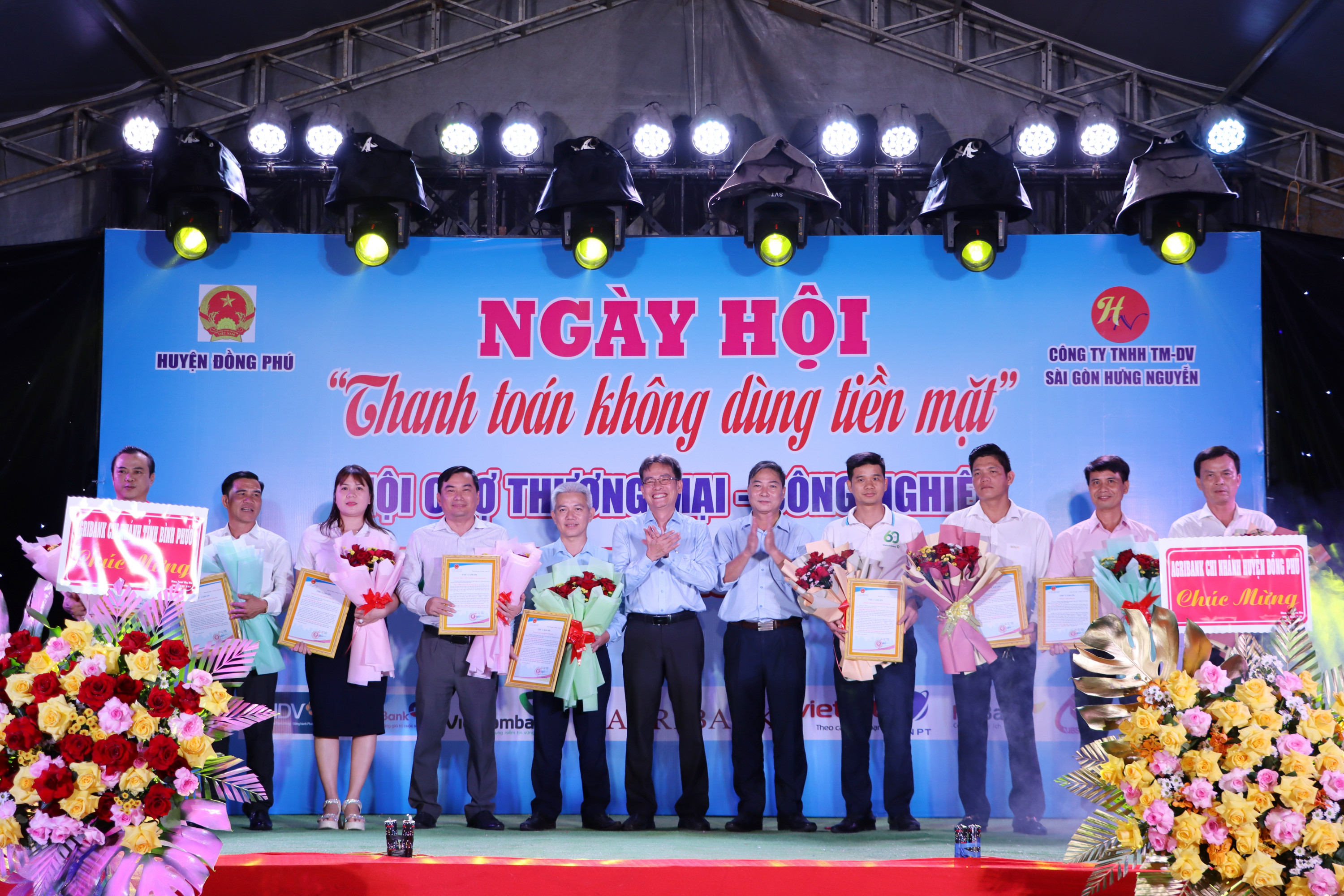 Lãnh đạo UBND huyện Đồng Phú tặng hoa cảm ơn các đơn vị, doanh nghiệp đồng hành, hỗ trợ mang đến những dịch vụ trải nghiệm thú vị cho người dân