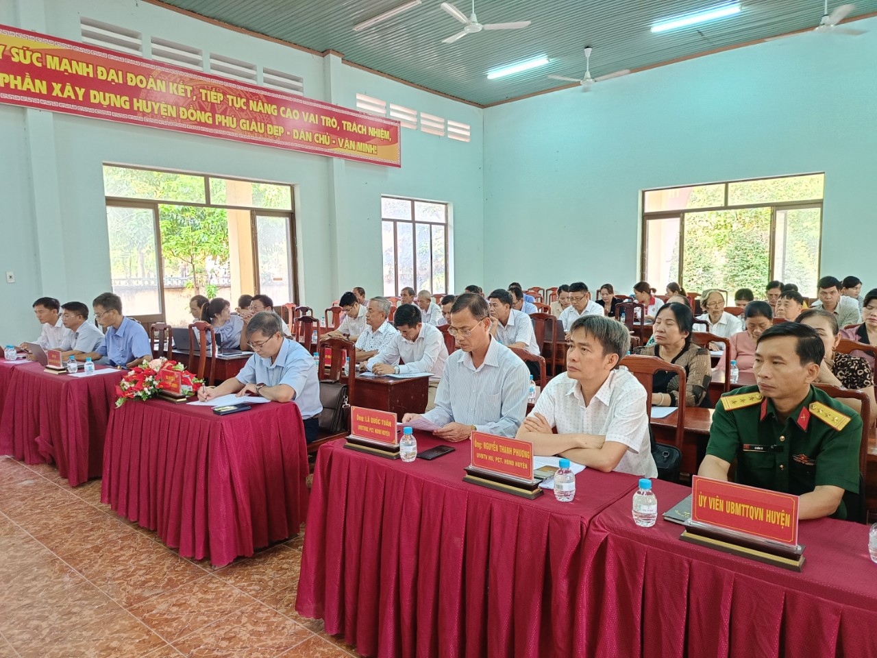 Phó bí thư thường trực Huyện uỷ, chủ tịch HĐND huyện Đinh Văn Kỹ; Uỷ viên BTV Huyện uỷ, phó chủ tịch HĐND huyện Lã Quốc Tuấn; uỷ viên BTV Huyện uỷ, phó chủ tịch UBND huyện Nguyễn Thanh Phương cùng lãnh đạo một số cơ quan, ban, ngành, đoàn thể huyện; lãnh đạo Đảng uỷ, UBMTTQ các xã, thị trấn dự hội nghị.