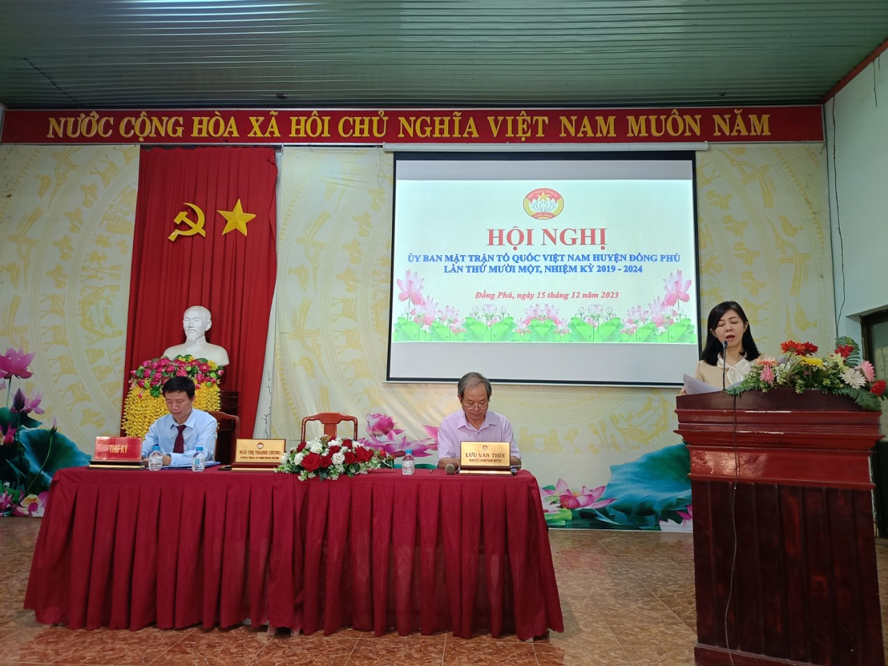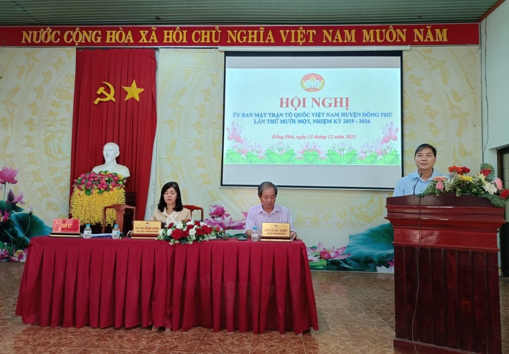 Phát biểu chỉ đạo, Phó bí thư thường trực Huyện uỷ, chủ tịch HĐND huyện Đinh Văn Kỹ đánh giá cao những thành tích của MTTQ các cấp đạt được trong năm vừa qua. Đồng thời tin tưởng trong năm 2024, Ban thường trực Uỷ ban MTTQ Việt Nam huyện sẽ lãnh đạo, chỉ đạo tổ chức thành công đại hội mặt trận cấp cơ sở, tiến tới Đại hội mặt trận tổ quốc cấp huyện nhiệm kỳ 2024-2029. Tiếp tục phát huy sức mạnh của khối đại đoàn kết, hoàn thành các chỉ tiêu, nhiệm vụ, phong trào thi đua do các cấp, các ngành triển khai.