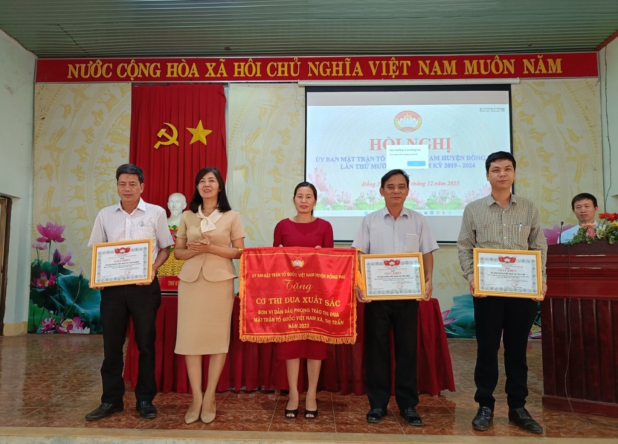 Dịp này, Uỷ ban MTTQ xã Đồng Tiến đã xuất sắc nhận cờ thi đua dành cho đơn vị dẫn đầu thi đua năm 2023. Uỷ ban MTTQ xã Tân Lập xếp hạng nhì, Uỷ ban MTTQ xã Tân Phước và xã Tân Tiến xếp hạng ba. Ngoài ra, Uỷ ban MTTQ Việt Nam huyện cũng tặng Uỷ ban MTTQ xã Đồng Tiến công trình 1.000 đồng chào mừng đại hội MTTQ huyện lần thứ X, nhiệm kỳ 2024-2029 với tổng trị giá 50 triệu đồng.