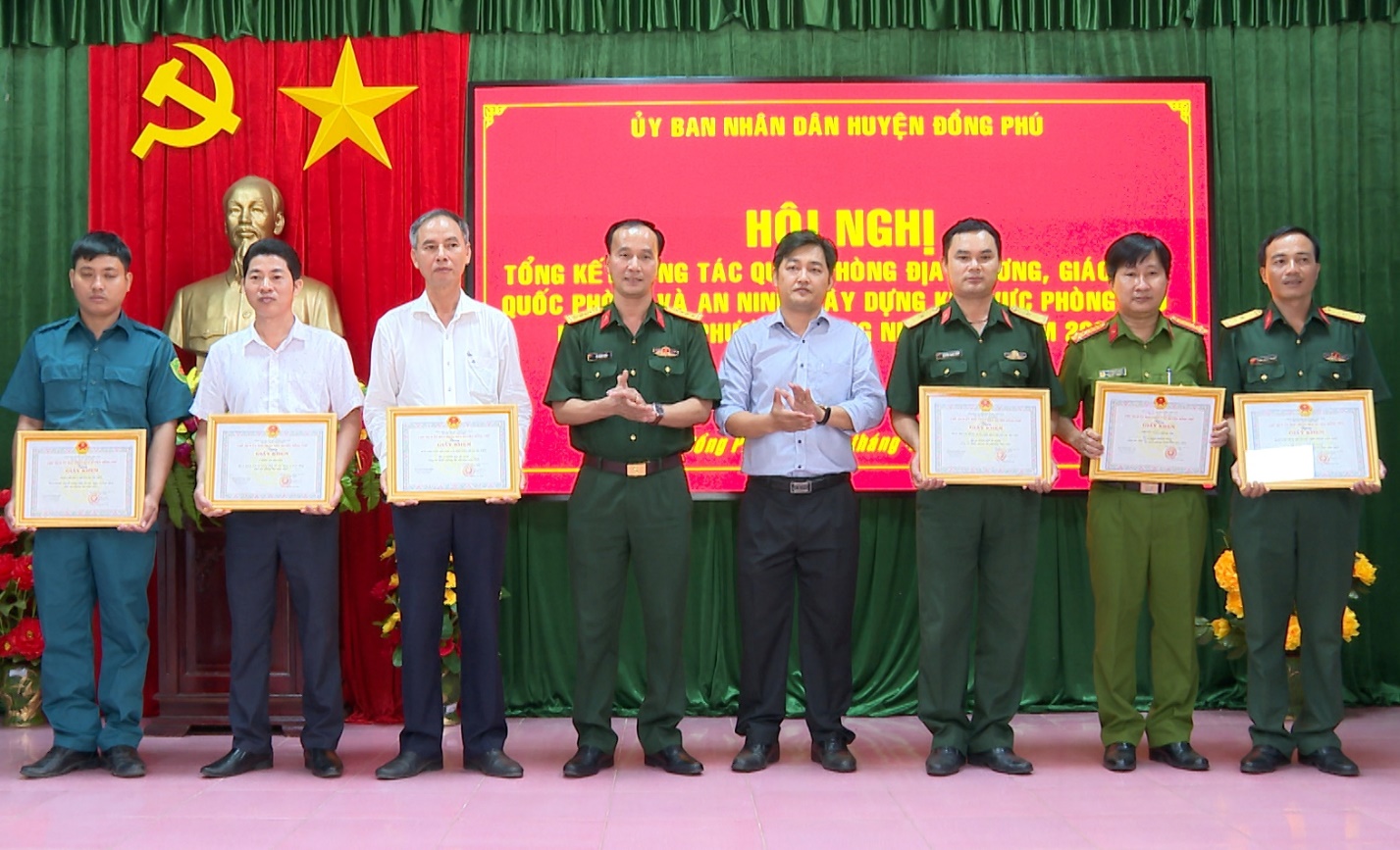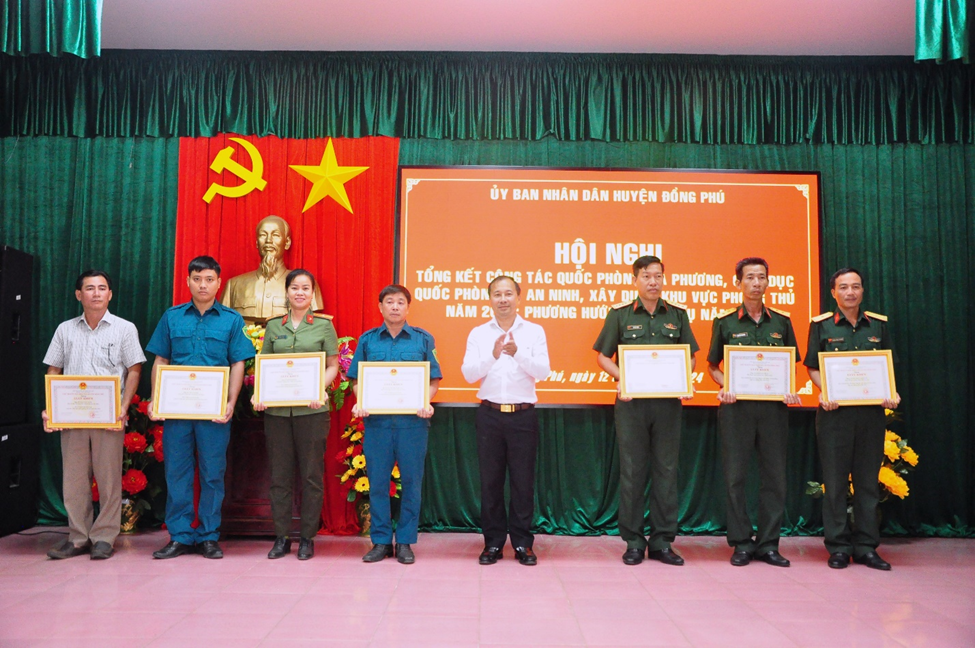 Dịp này UBND huyện Đồng Phú đã tặng giấy khen cho 6 tập thể, 9 cá nhân có thành tích tốt trong công tác quốc phòng địa phương, xây dựng khu vực phòng thủ, giáo dục quốc phòng và an ninh năm 2023.