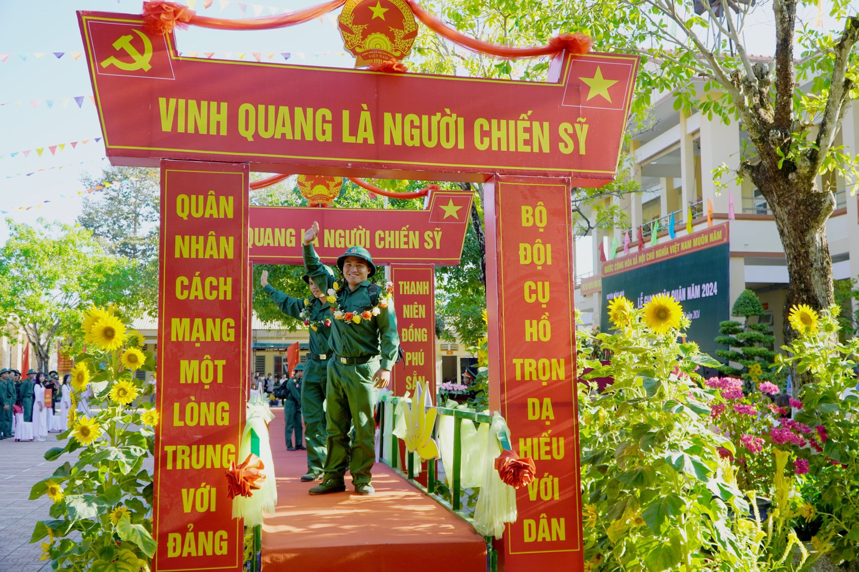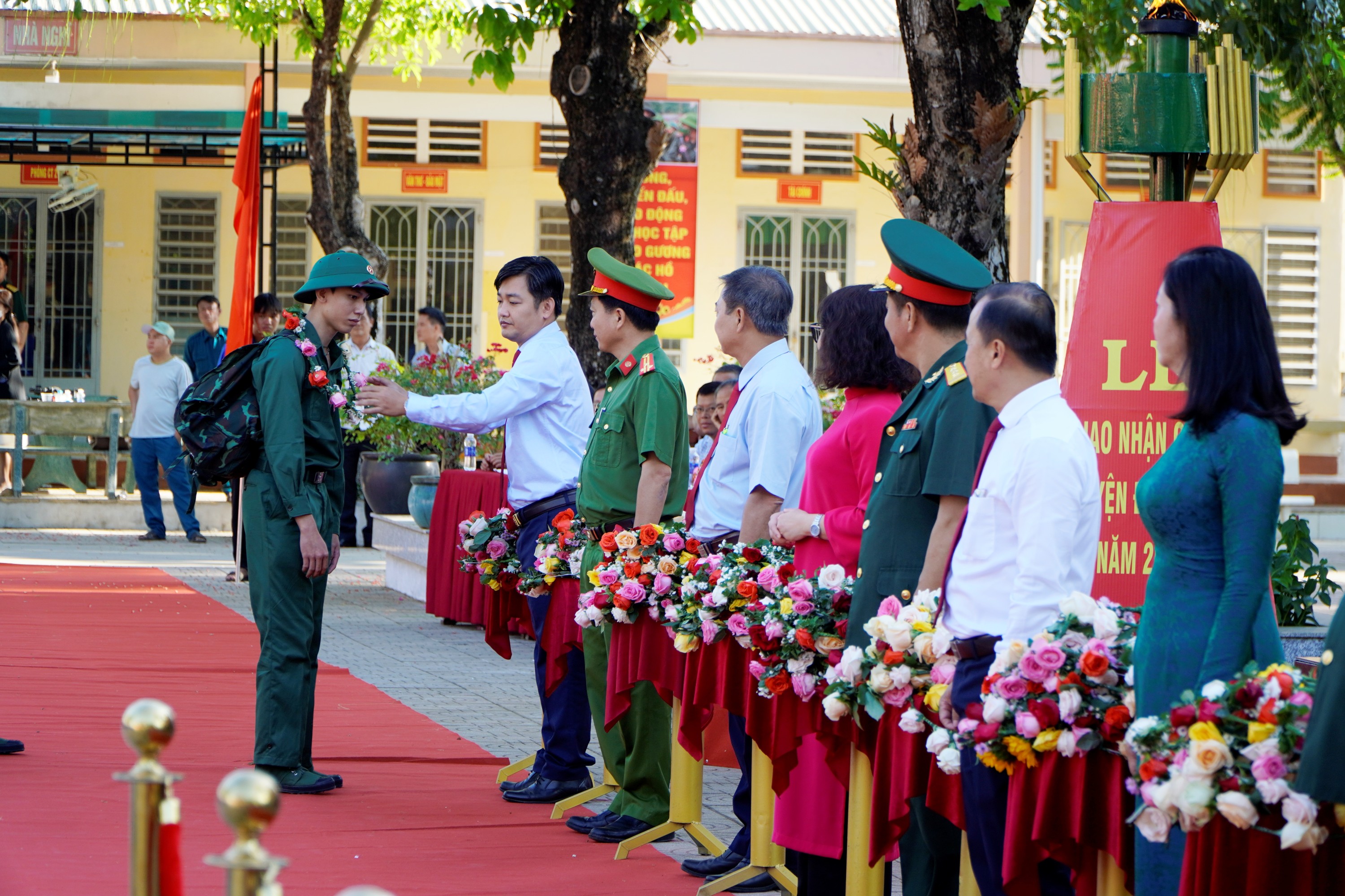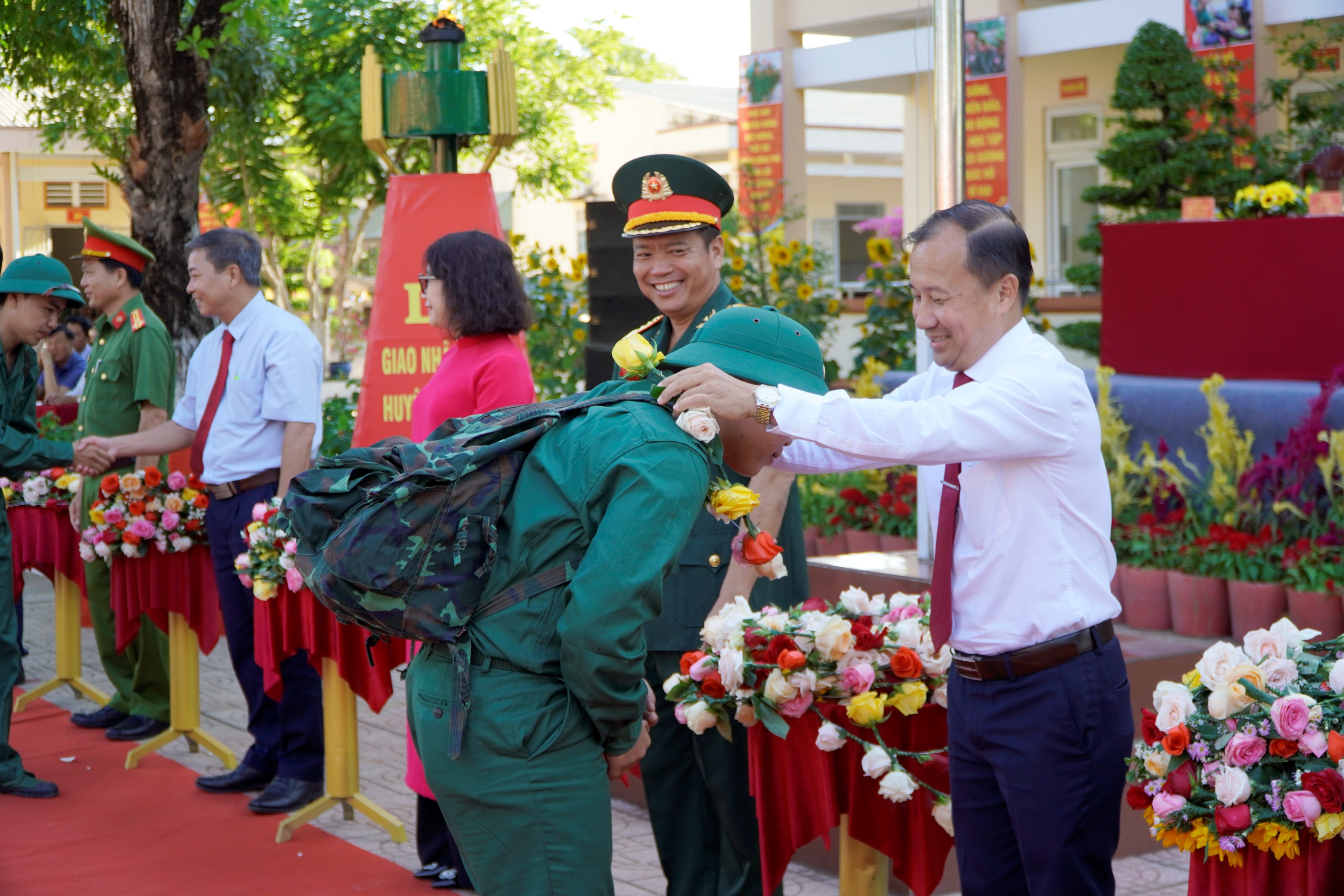 Lễ giao nhận quân được tổ chức trang trọng, chu đáo, an toàn, huyện giao 160 công dân cho các đơn vị nhận quân, đạt 100% chỉ tiêu. Trong đó Quân sự 125 công dân, Công an 35 công dân. Trong số công dân nhập ngũ vào quân đội, sức khoẻ loại 1 và loại 2 có 101 công dân, chiếm 80,8%, tăng 0,8% so với năm trước; trình độ trung cấp, cao đẳng, đại học 22 công dân, chiếm 17,6%, tăng 7,5%  so với năm 2023. công dân tham gia nghĩa vụ công an có 32 công dân đạt sức khoẻ loại 1 và loại 2, chiếm 91,4%; trình độ trung cấp, cao đẳng, đại học 2 công dân, đạt 5,7%. Tỷ lệ đảng viên nhập ngũ cả quân sự và công an đạt 2,5%.