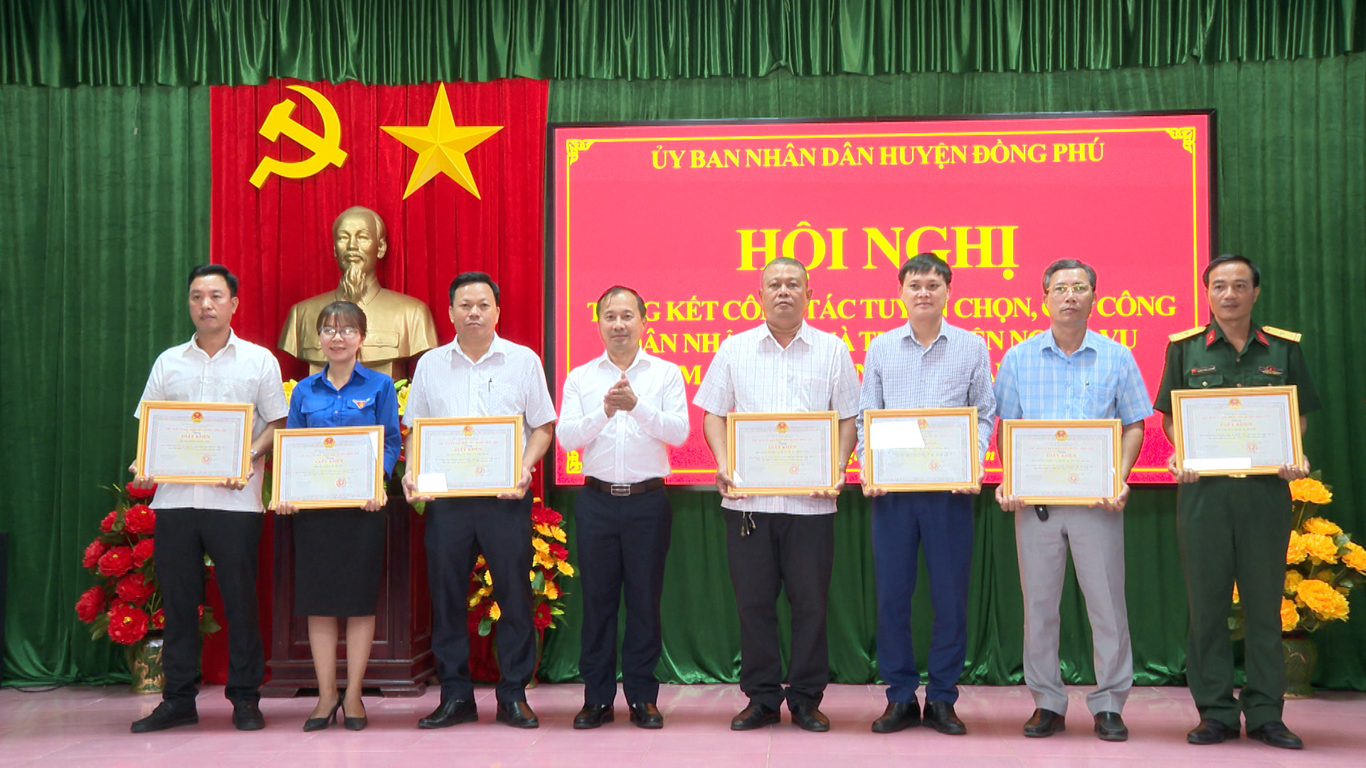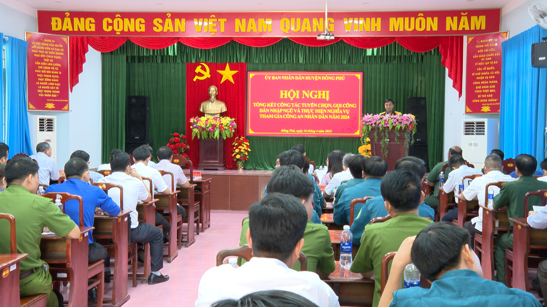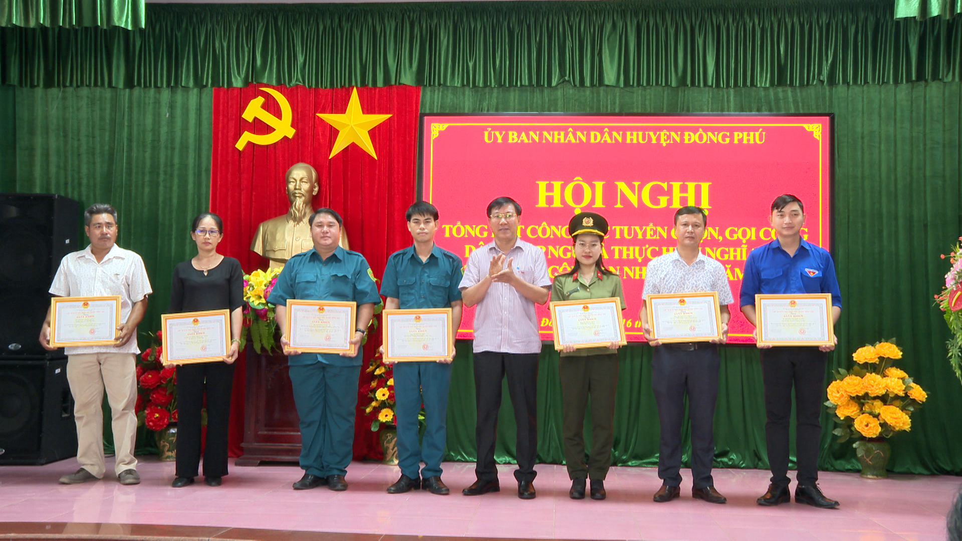 Sáng 16-4, UBND huyện Đồng Phú tổ chức hội nghị tổng kết công tác tuyển chọn, gọi công dân nhập ngũ và thực hiện nghĩa vụ tham gia công an nhân dân năm 2024. Đến dự có thành viên Hội đồng NVQS tỉnh phụ trách Đồng Phú, lãnh đạo Bộ CHQS tỉnh. Về phía huyện Đồng Phú có Tỉnh ủy viên, Bí thư Huyện ủy Nguyễn Quốc Dũng; Phó bí thư Huyện ủy, chủ tịch UBND huyện Nguyễn Anh Tuấn cùng đại diện các cơ quan, ban, ngành, đoàn thể huyện, Hội đồng NVQS các xã, thị trấn.