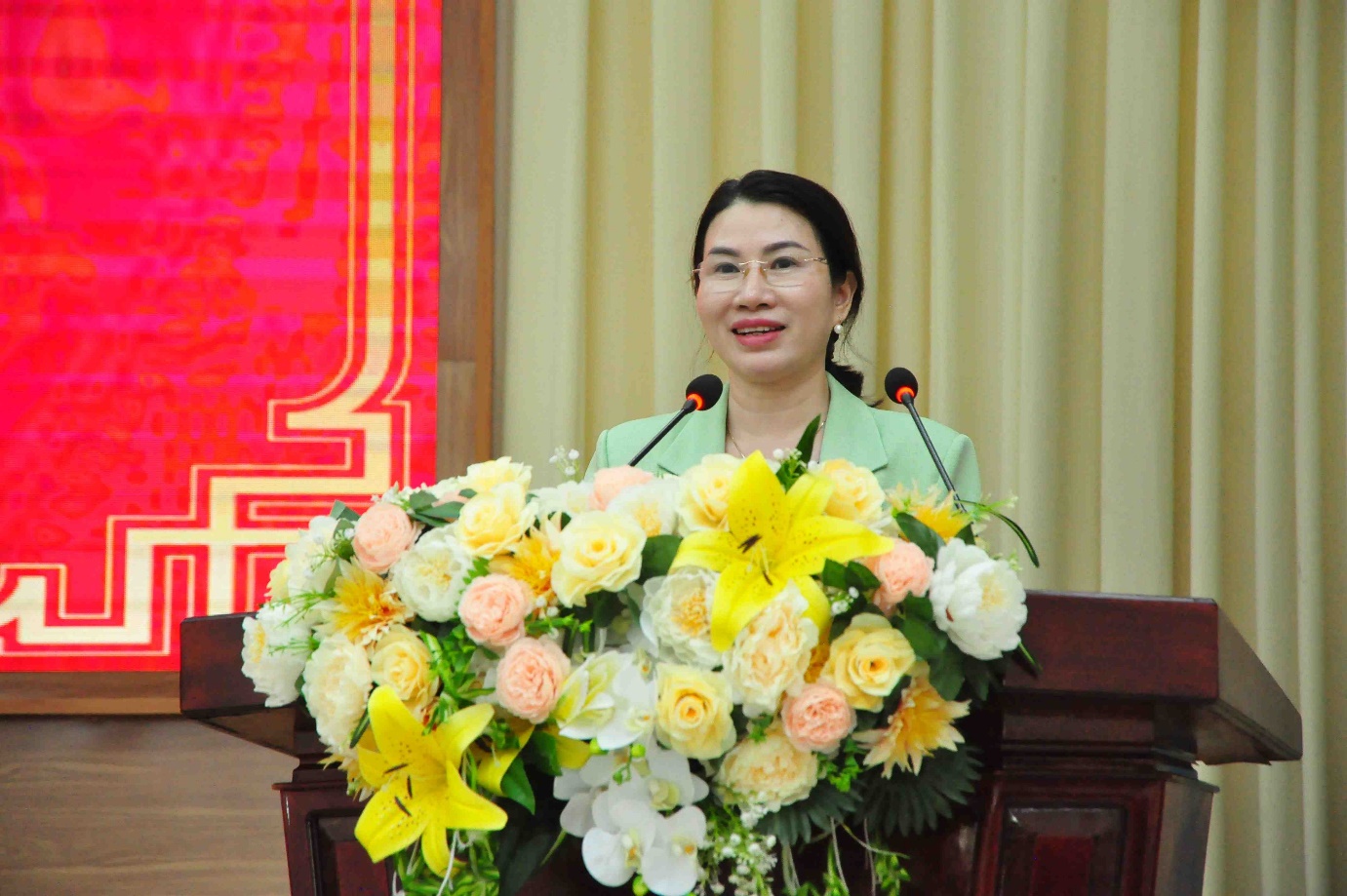 Phó trưởng Ban Tuyên giáo Tỉnh uỷ Đào Thị Lanh cũng tới dự và phát biểu chúc mừng kết quả hội thi
