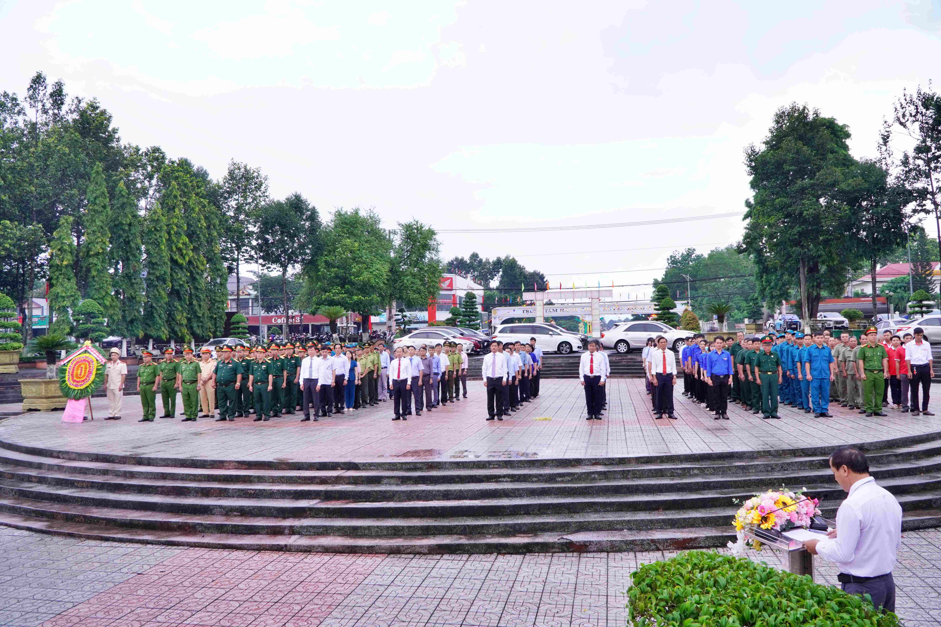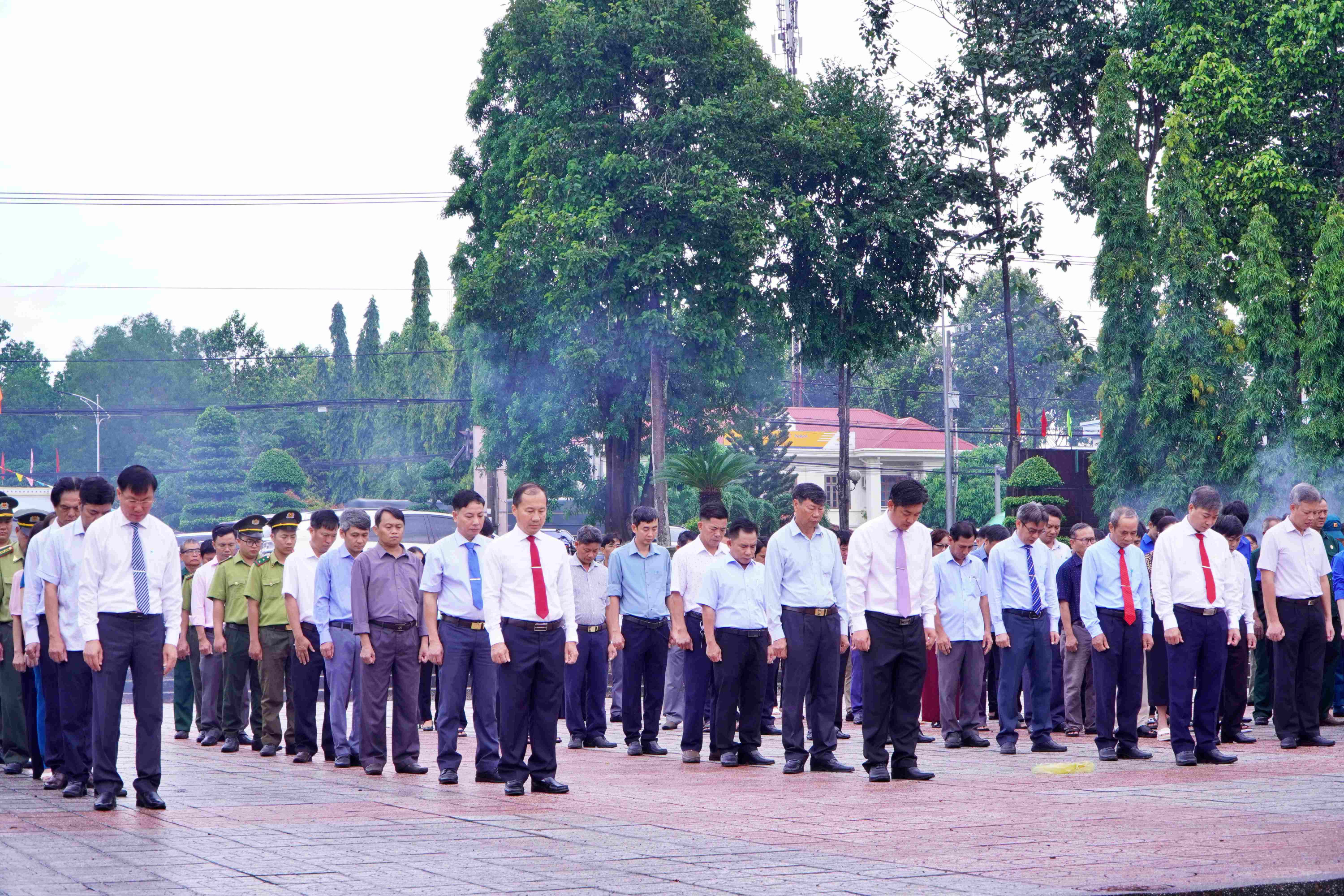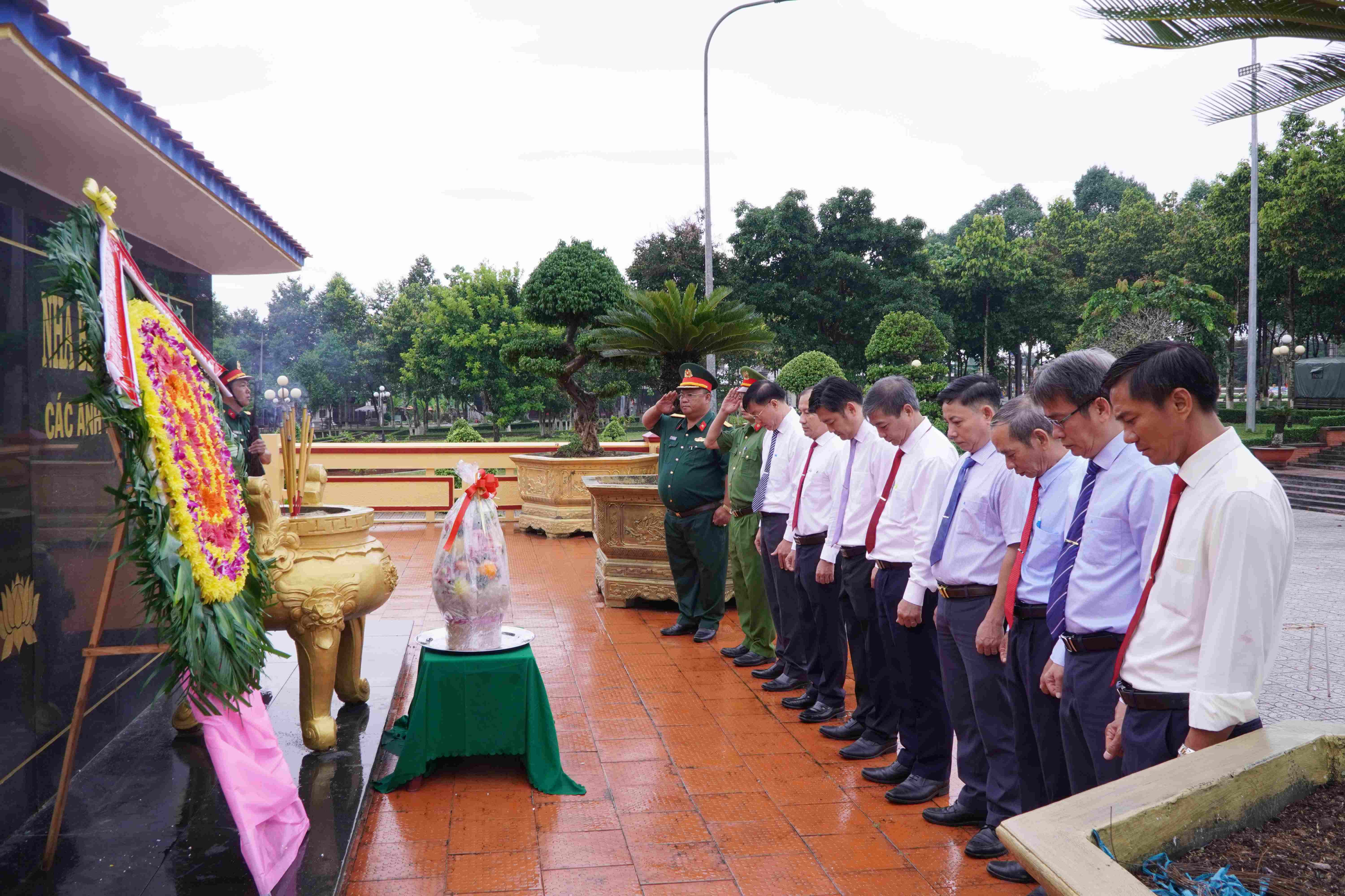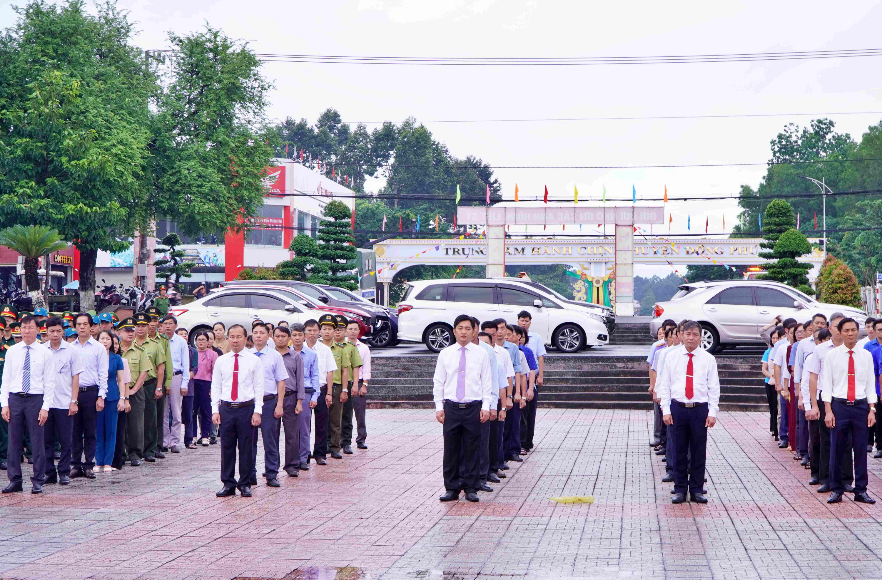 Trong không khí trang nghiêm và thành kính, các đại biểu đã dành một phút mặc niệm tưởng nhớ, tri ân công lao to lớn của các anh hùng liệt sĩ. Vòng hoa mang dòng chữ “Đời đời ghi nhớ công ơn các anh hùng liệt sĩ” cùng những nén hương thơm bày tỏ sự tri ân, lòng thành kính và sự biết ơn sâu sắc của Đảng bộ, Chính quyền và Nhân dân huyện Đồng Phú đối với những người con ưu tú của đất nước đã hiến dâng trọn cuộc đời cho nền độc lập, tự do của Tổ quốc, vì cuộc sống bình yên, hạnh phúc của nhân dân.