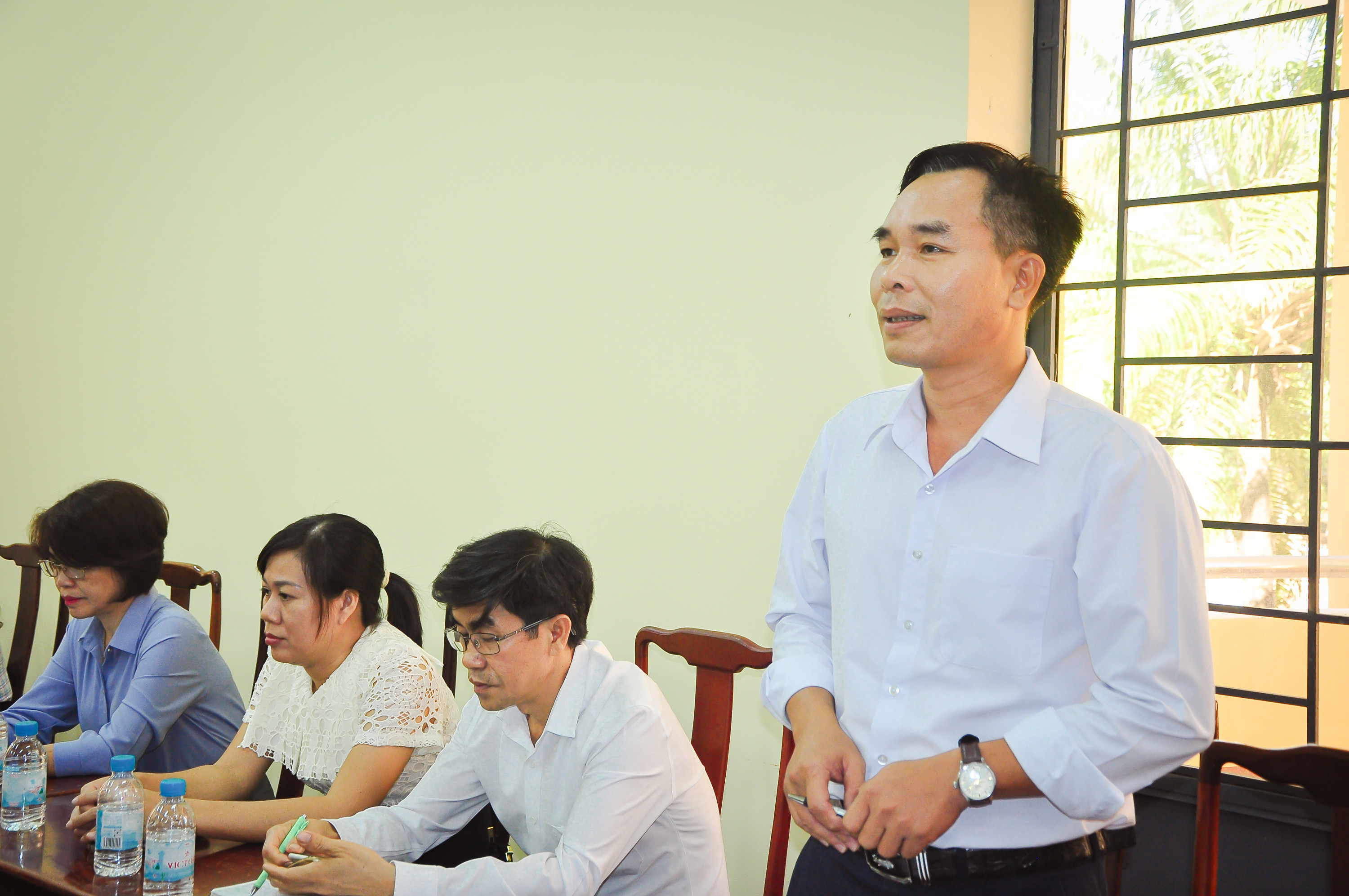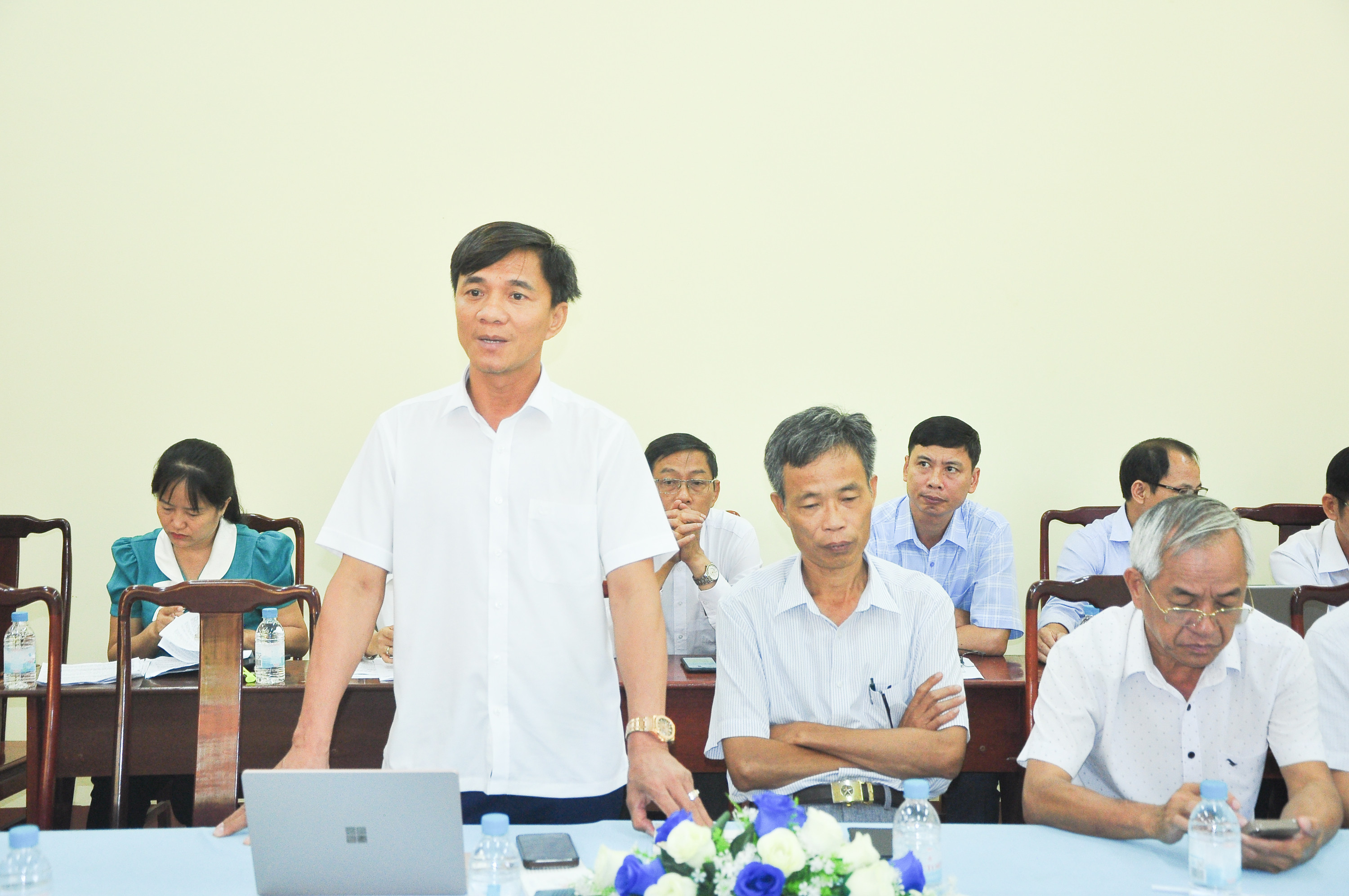 Huyện ủy viên, Phó trưởng Ban Tuyên giáo và Dân vận Nguyễn Đức Việt Tựu báo cáo kết quả quý I