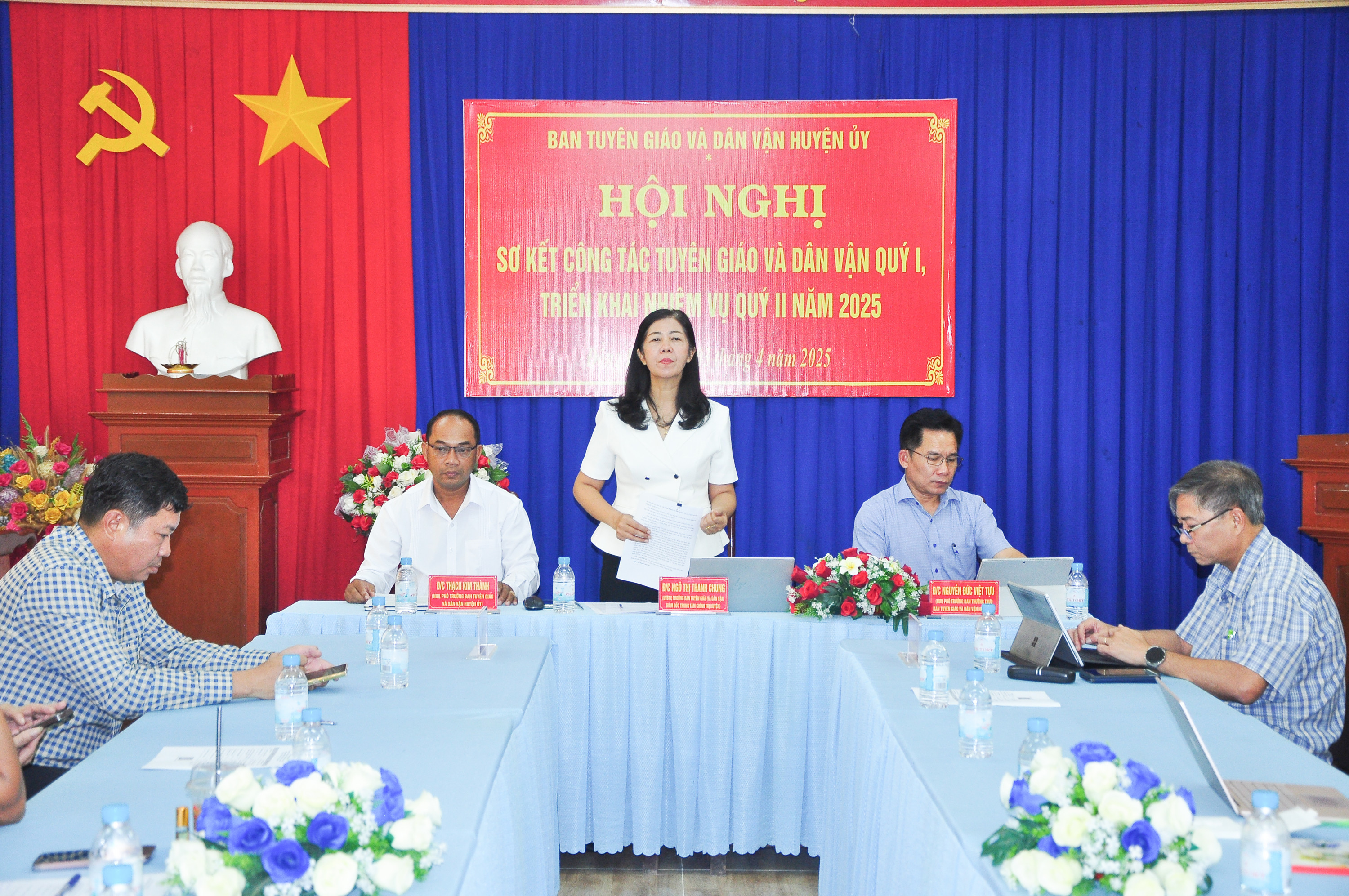 Trong quý, Ban Tuyên giáo và Dân vận đã tham mưu Huyện uỷ xây dựng Văn kiện đại hội đại biểu Đảng bộ huyện lần thứ XIII, nhiệm kỳ 2025 - 2030; tổ chức lấy ý kiến góp ý vào các dự thảo văn kiện trình Đại hội Đảng các cấp; phối hợp hướng dẫn, duyệt văn kiện đại hội các chi, đảng bộ trực thuộc Huyện ủy nhiệm kỳ 2025 - 2030. Tham mưu xây dựng Kế hoạch tổ chức học tập và triển khai thực hiện Chuyên đề năm 2025 về “Học tập và làm theo tư tưởng, đạo đức, phong cách Hồ Chí Minh về phát huy giá trị văn hóa, sức mạnh tinh thần; tiếp tục khơi dậy khát vọng xây dựng và phát triển tỉnh Bình Phước giàu đẹp, văn minh cùng cả nước bước vào kỷ nguyên phát triển mới”, đồng thời tổ chức học tập trực tuyến Chuyên đề tại 15 điểm cầu với 2.299 đảng viên tham dự; tham mưu xét chọn 1 tập thể, 1 cá nhân có thành tích xuất sắc trong học tập và làm theo tư tưởng, đạo đức, phong cách Hồ Chí Minh đề nghị UBND tỉnh tặng bằng khen. Ngoài ra còn tổ chức hội nghị trực tuyến toàn quốc về đột phá phát triển khoa học, công nghệ, đổi mới sáng tạo và chuyển đổi số quốc gia với 2.193 đảng viên tham gia học tập; 1 hội nghị thông tin thời sự cho cán bộ chủ chốt cấp huyện, cơ sở với 174 đồng chí tham dự.