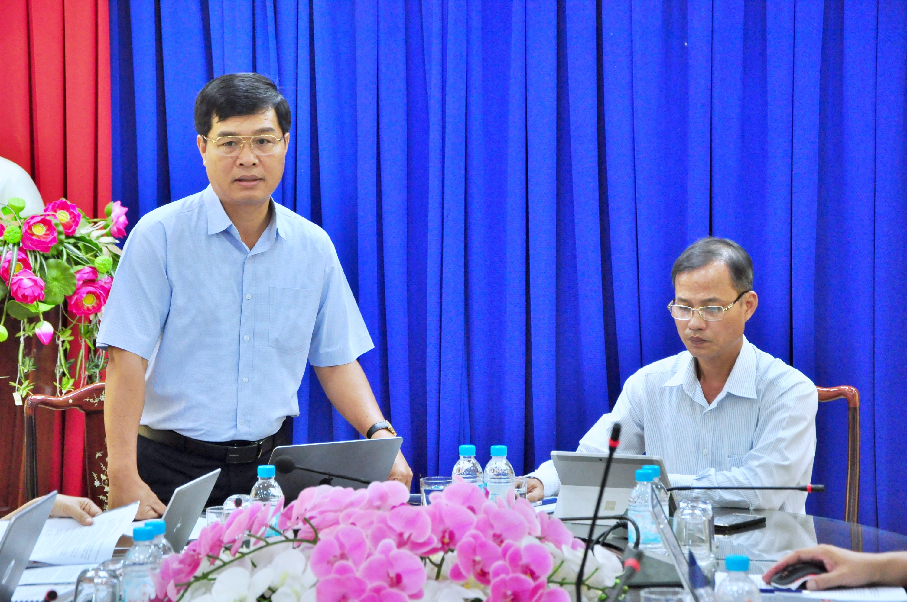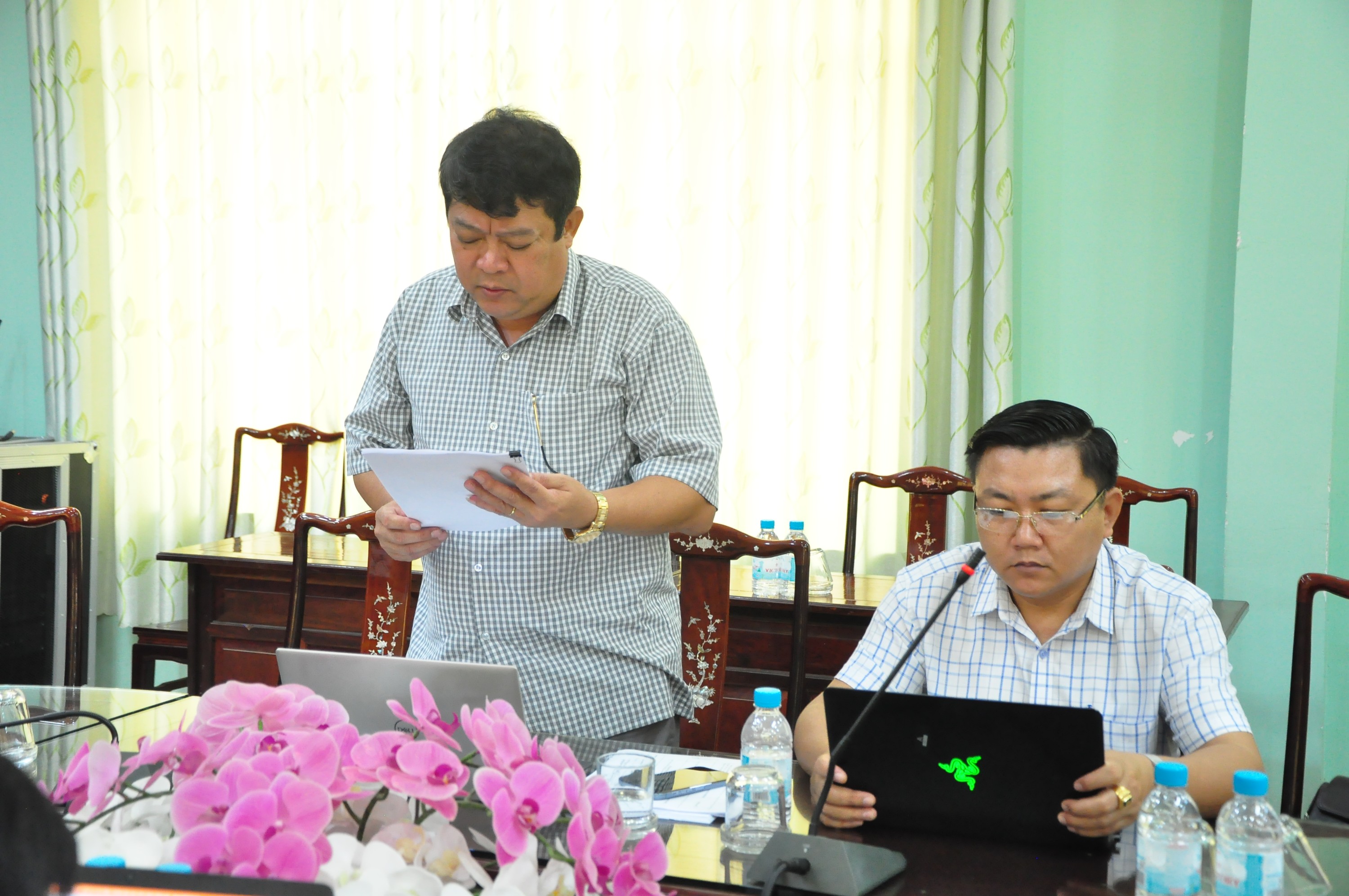 Ông Ngô Quang Thuấn, Trưởng phòng Tài chính - Kế hoạch thay mặt UBND huyện báo cáo kết quả thực hiện thu hồi đất, bồi thường, hộ trợ thực hiện các dự án