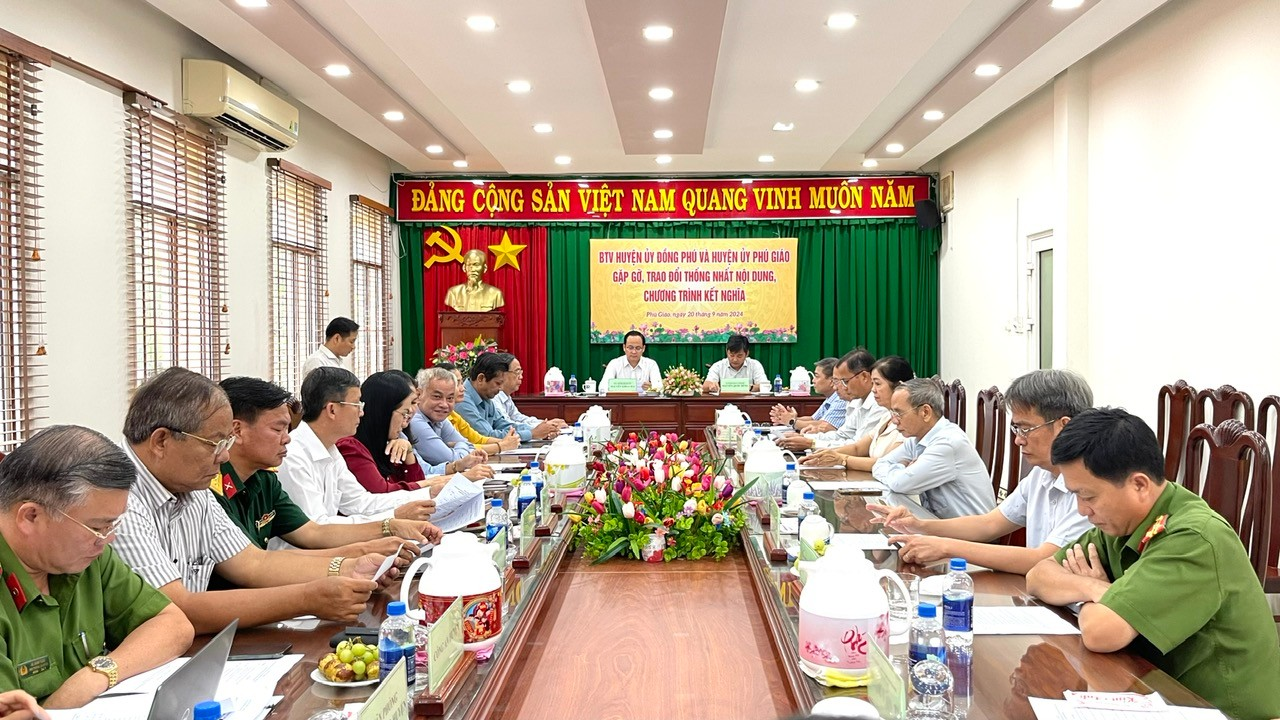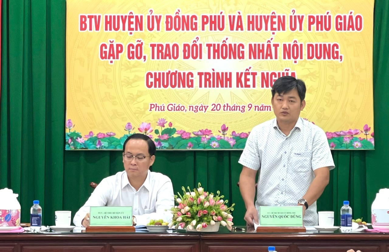Chiều 20- 9, Huyện ủy Đồng Phú và Huyện ủy Phú Giáo (tỉnh Bình Dương) đã có buổi gặp gỡ, trao đổi thống nhất nội dung chương trình kết nghĩa.