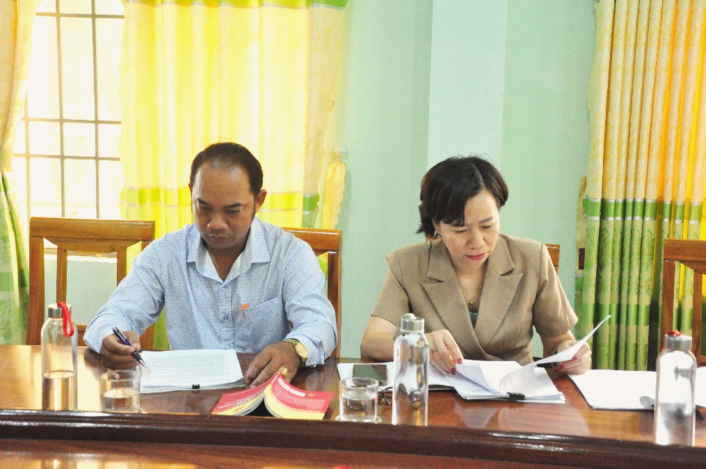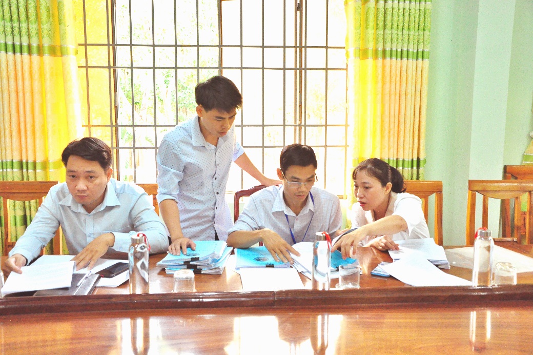 Các thành viên đoàn khảo sát kiểm tra, nắm bắt hồ sơ