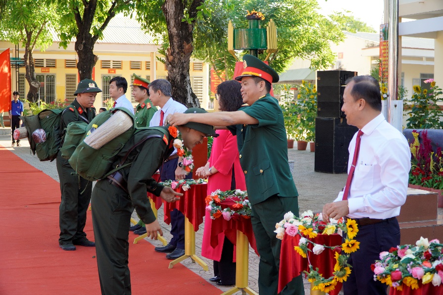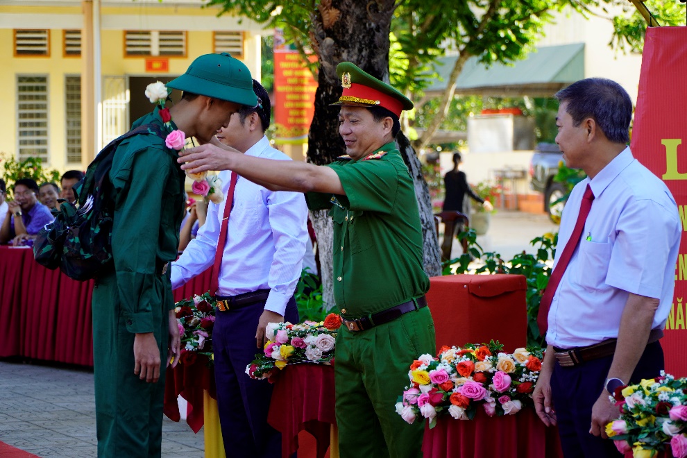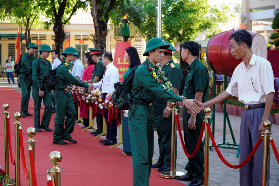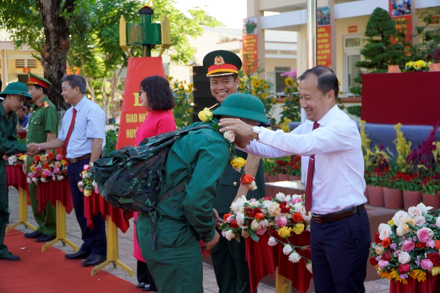 Lãnh đạo tỉnh, huyện đến dự lễ nhằm động viên và tiễn các thanh niên lên đường nhập ngũ