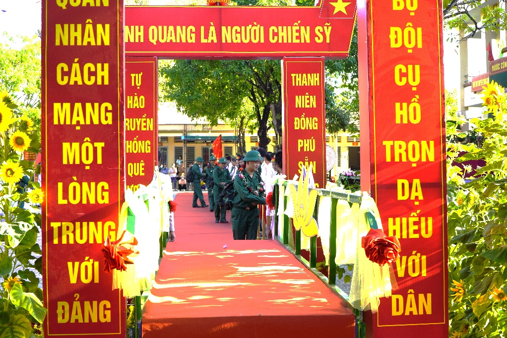 Trong sự cổ vũ, động viên của lãnh đạo, người thân và nhân dân, 160 thanh niên ưu tú đã bước qua cầu vinh quang để lên đường thực hiện nghĩa vụ thiêng liên của tổ quốc.