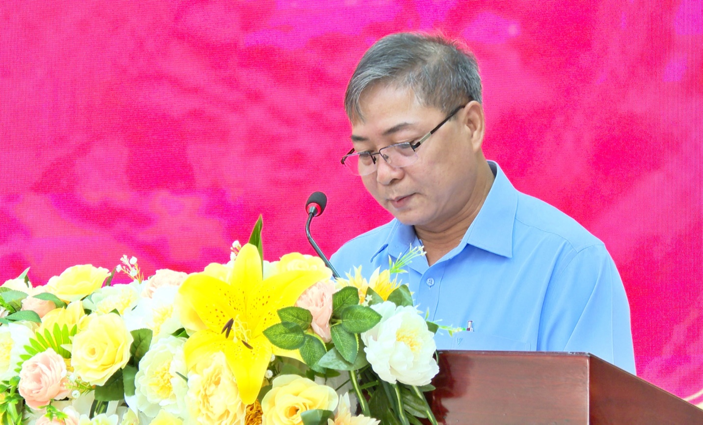 Bí thư Huyện uỷ Nguyễn Tấn Hùng phát biểu khai mạc hội nghị