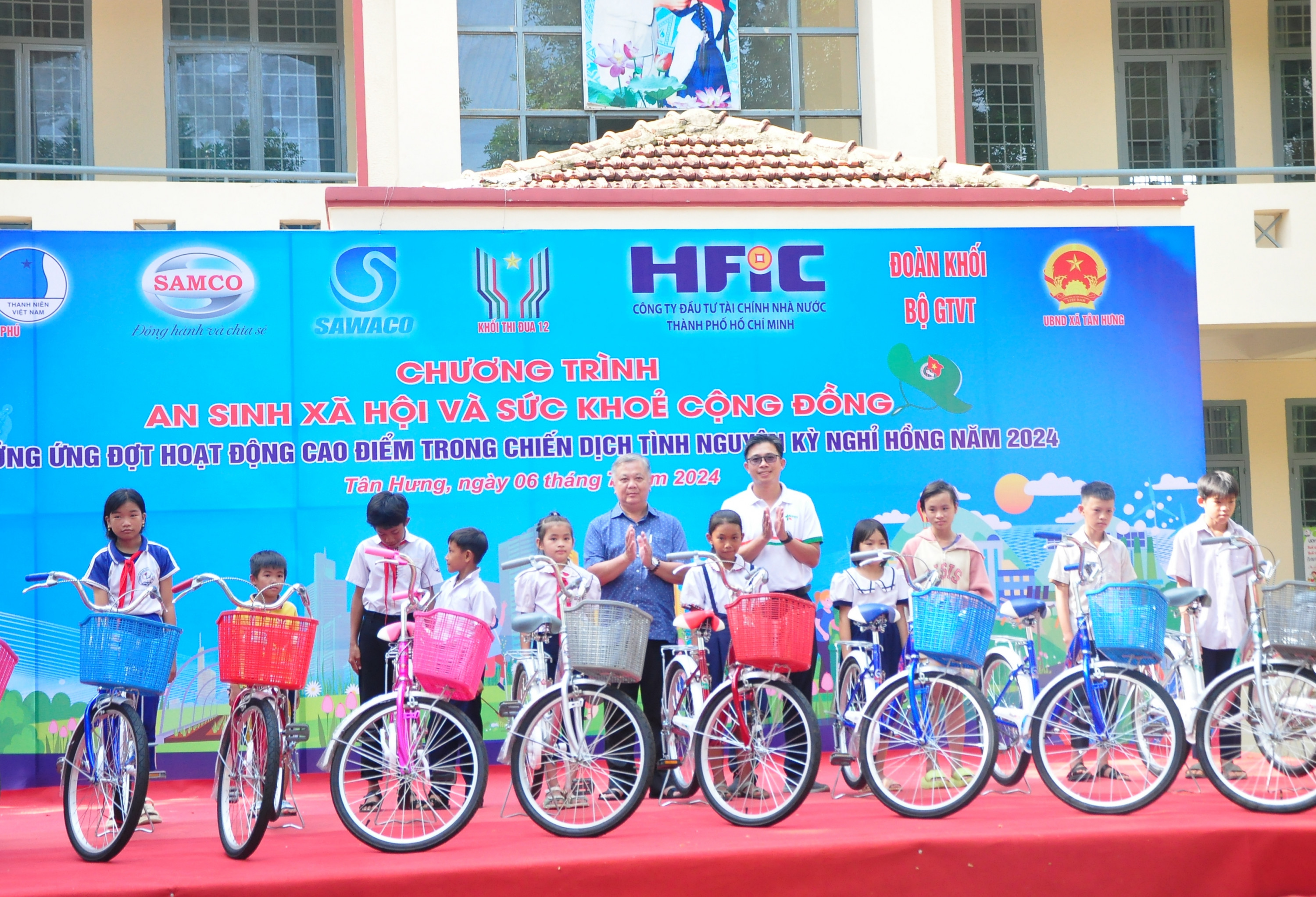 Cùng với đó, đoàn đã tặng 10 chiếc xe đạp, mỗi chiếc trị giá 1,5 triệu đồng và 25 suất học bổng, mỗi suất trị giá 1 triệu đồng cho các em học sinh vượt khó học giỏi; tặng 20 phần quà là các nhu yếu phẩm cho người dân, gia đình chính sách, thanh niên yếu thế có hoàn cảnh khó khăn với tổng trị giá các phần 10 triệu đồng.