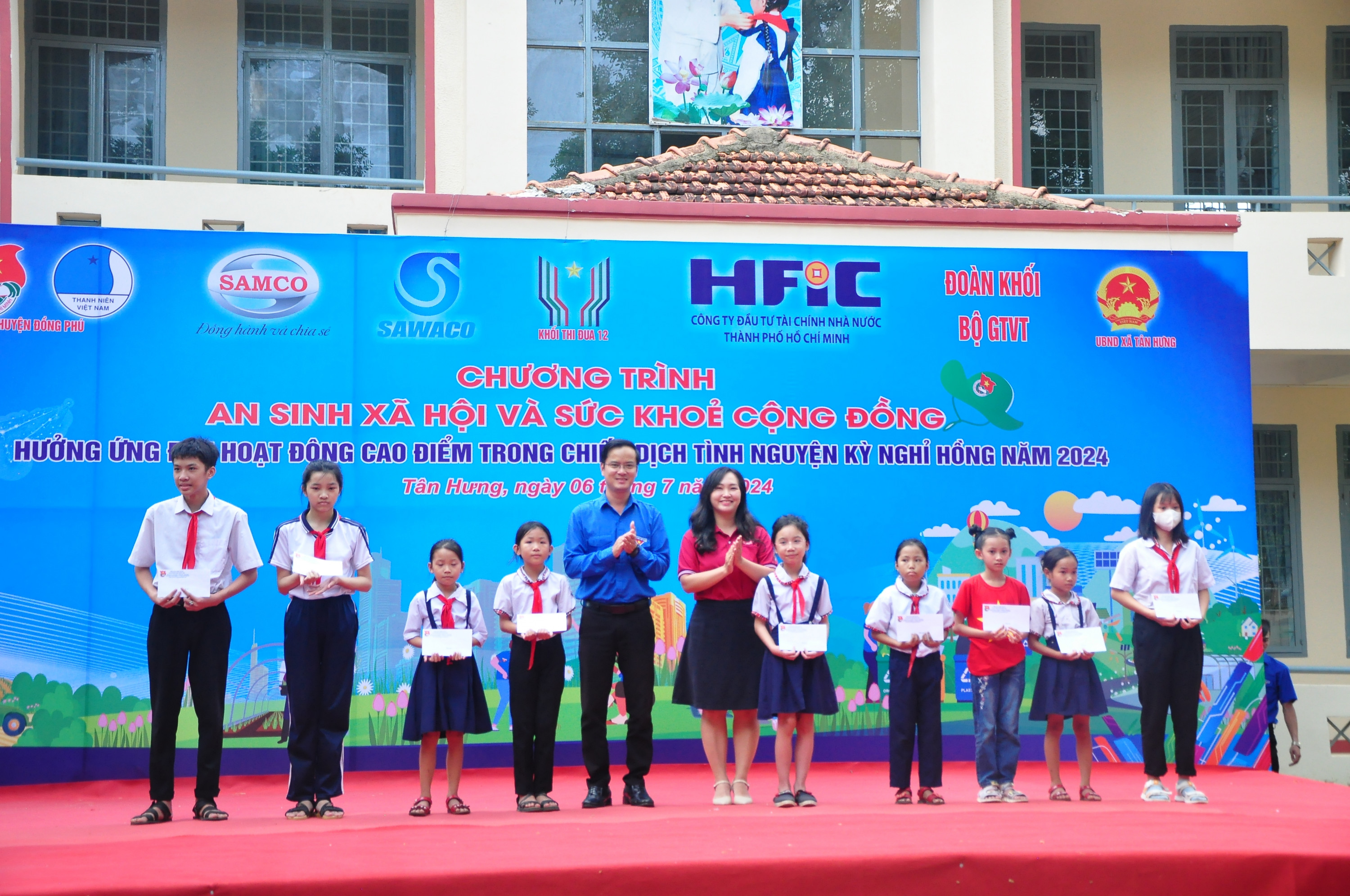 Chiều 6-7, tại Trường Tiểu học và THCS Tân Hưng, huyện Đồng Phú, Huyện đoàn Đồng Phú phối hợp cùng Khối thi đua 12, UBND thành phố Hồ Chí Minh; Cụm Xây dựng - Giao thông Thành Đoàn thành phố Hồ Chí Minh tổ chức Chương trình An sinh xã hội và sức khỏe cộng đồng năm 2024. Đây là chuỗi hoạt động nhằm hưởng ứng đợt cao điểm chiến dịch tình nguyện kỳ nghỉ hồng năm 2024 của tuổi trẻ các đơn vị.