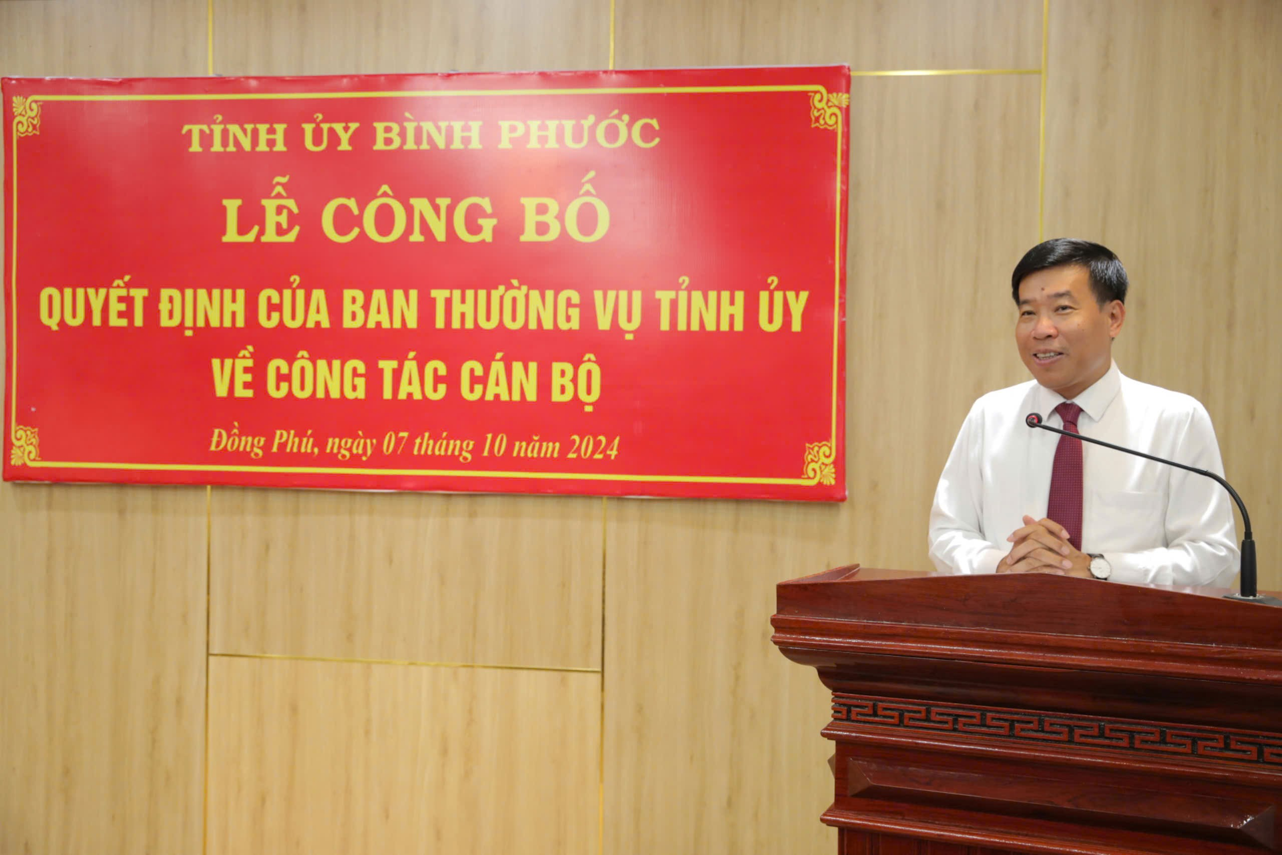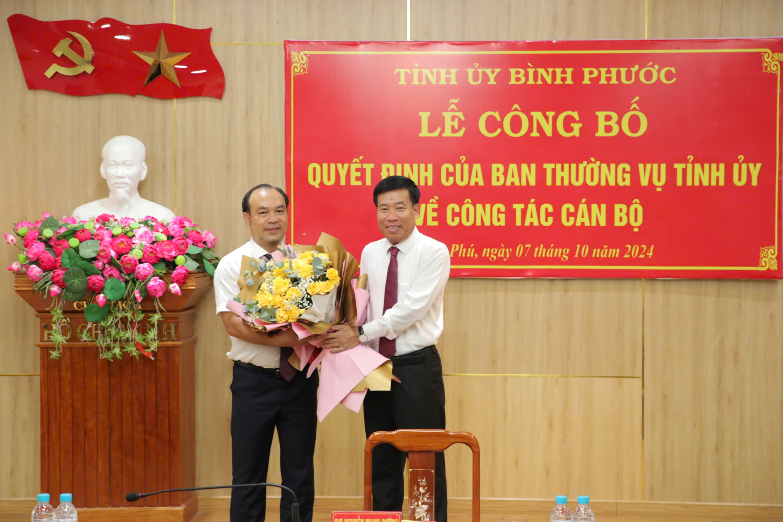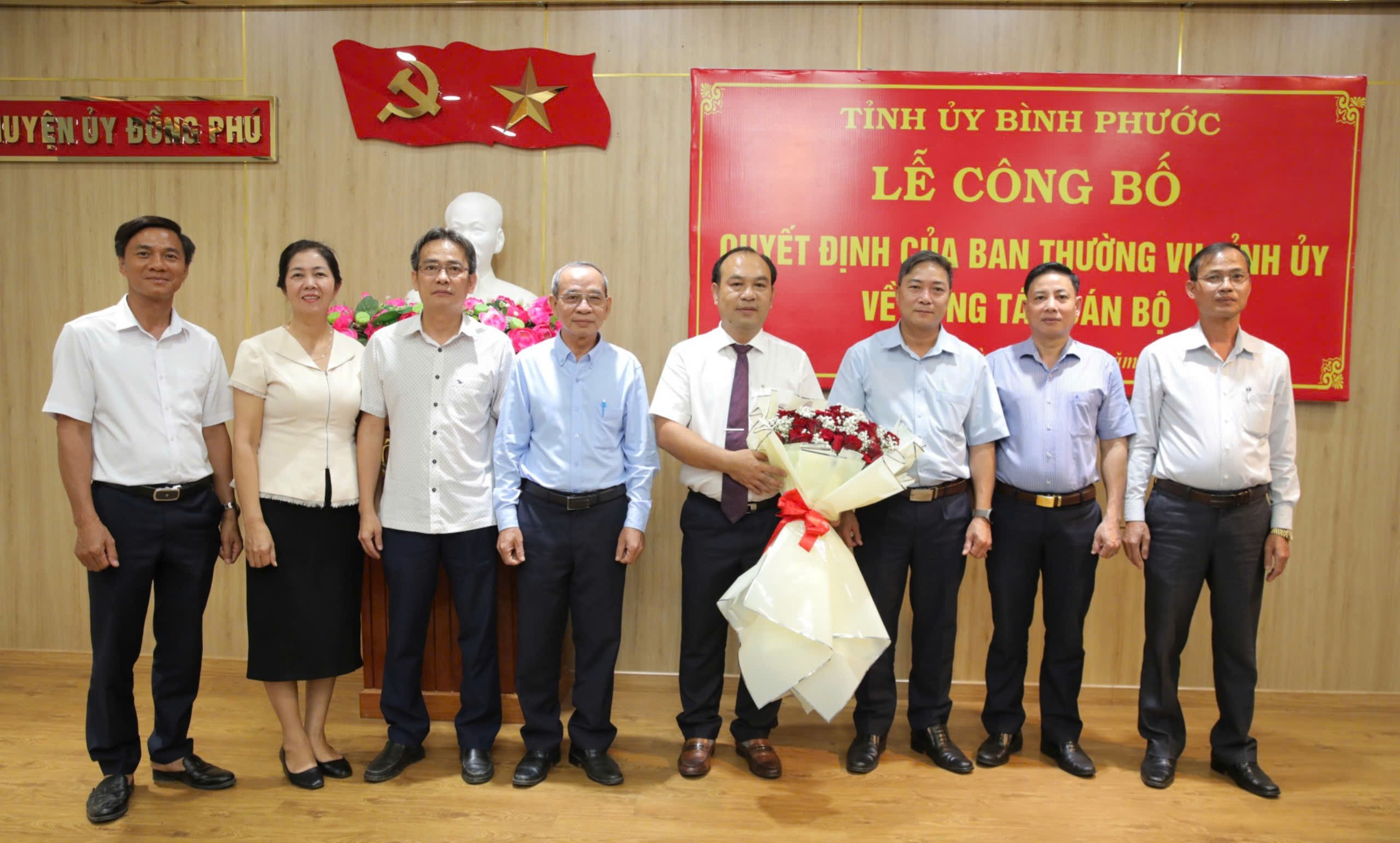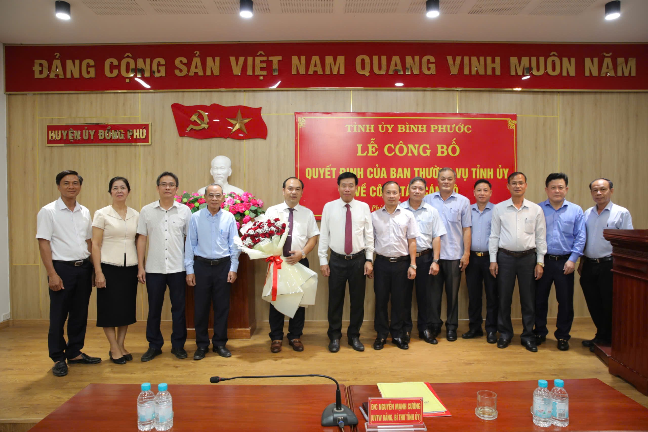 Tại buổi lễ, Bí thư Tỉnh ủy Nguyễn Mạnh Cường đã trao quyết định của Ban Thường vụ Tỉnh ủy điều động ông Nguyễn Tấn Hùng, Tỉnh ủy viên, Giám đốc Sở Giao thông - Vận tải đến nhận công tác tại Huyện ủy Đồng Phú, chỉ định tham gia Ban Chấp hành, Ban Thường vụ và giữ chức vụ Bí thư Huyện ủy Đồng Phú nhiệm kỳ 2020-2025.