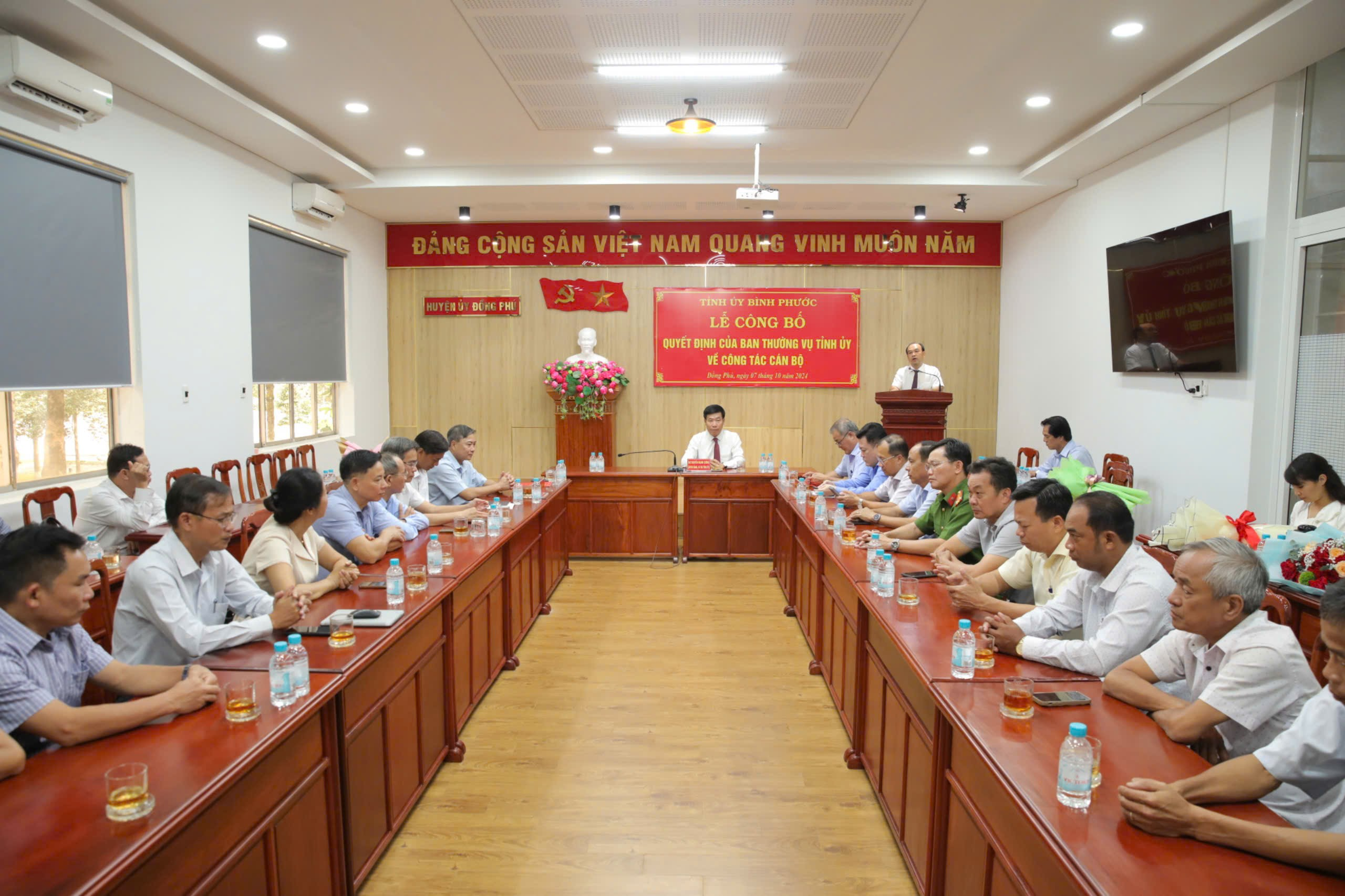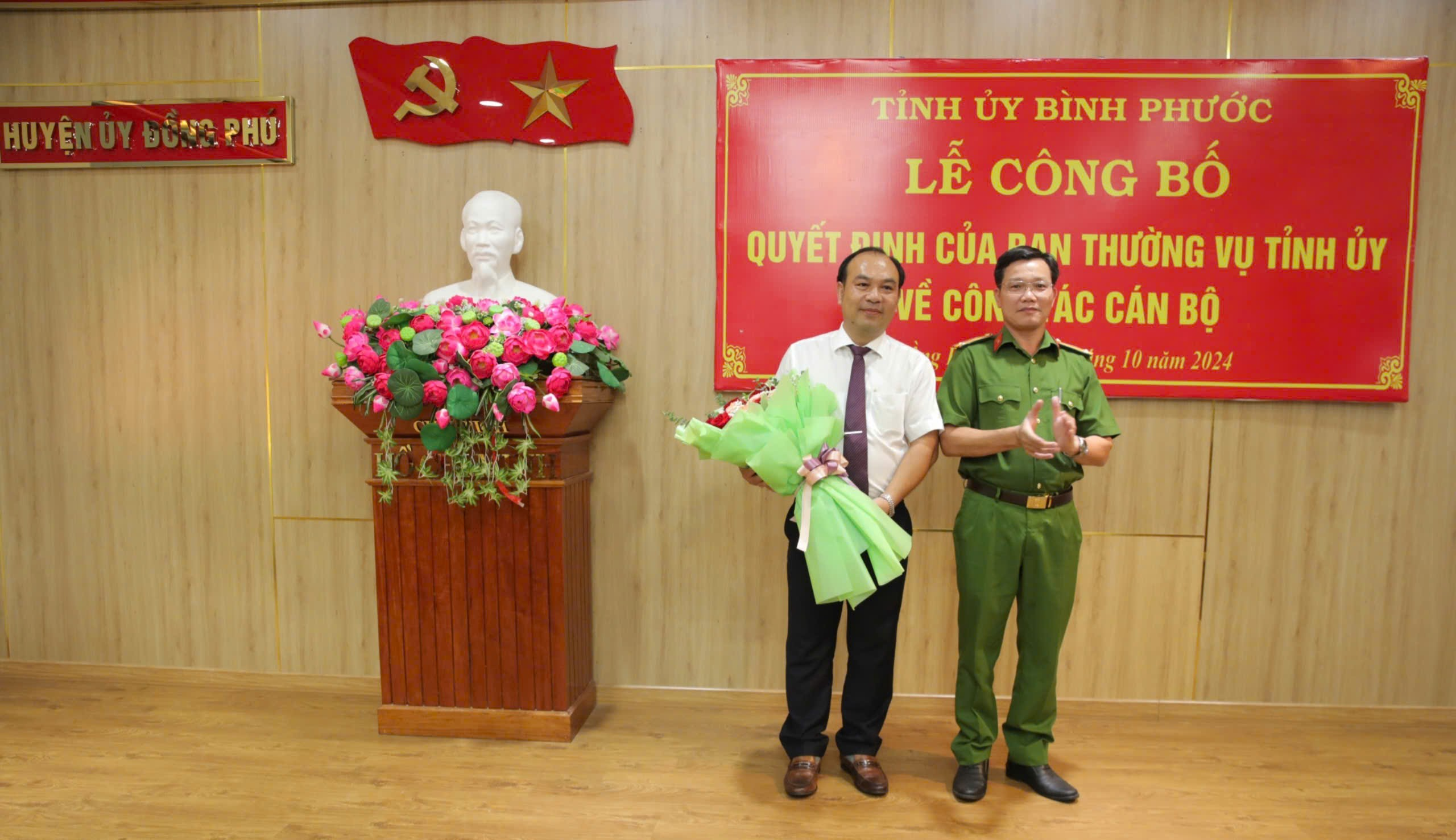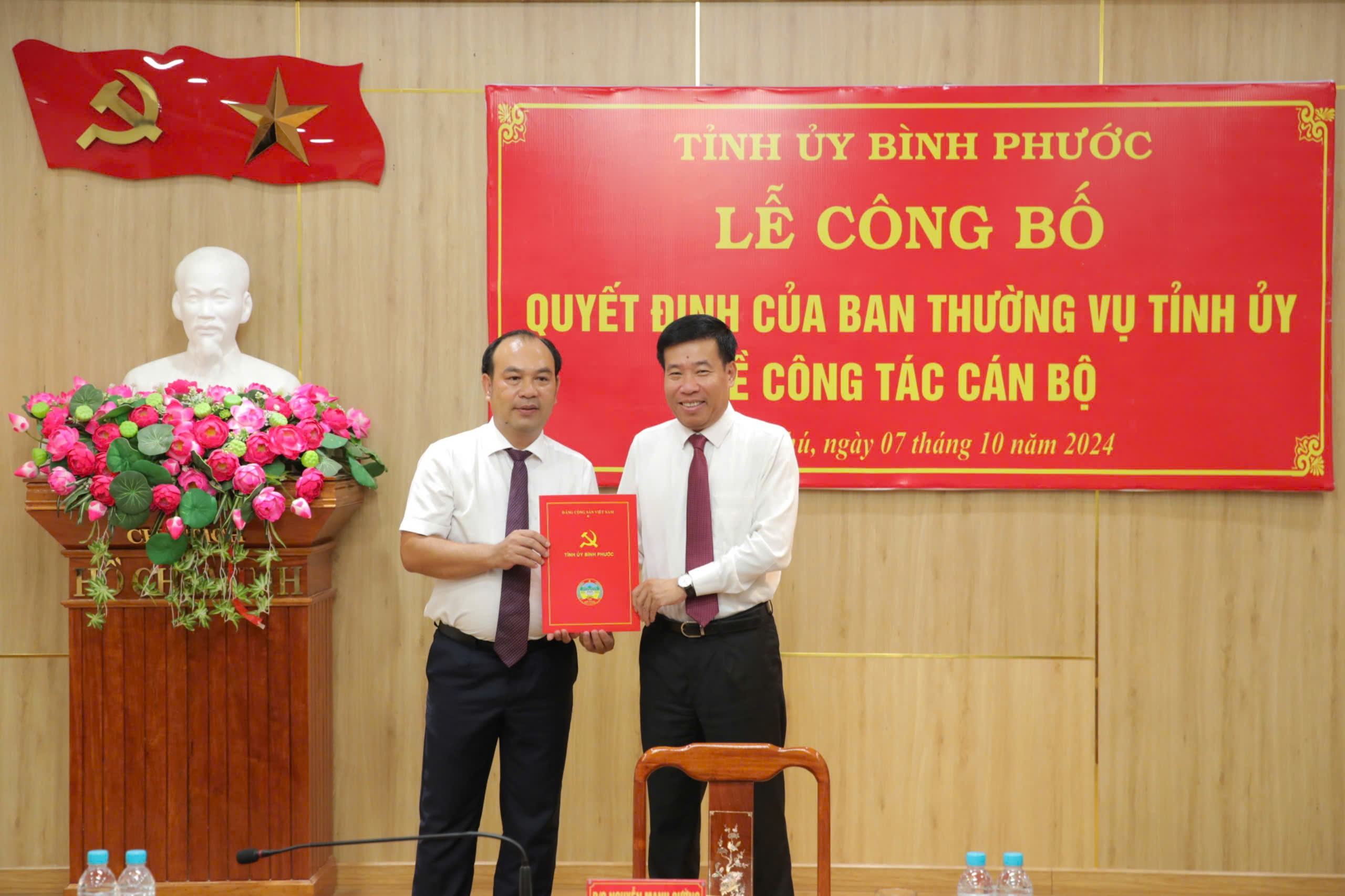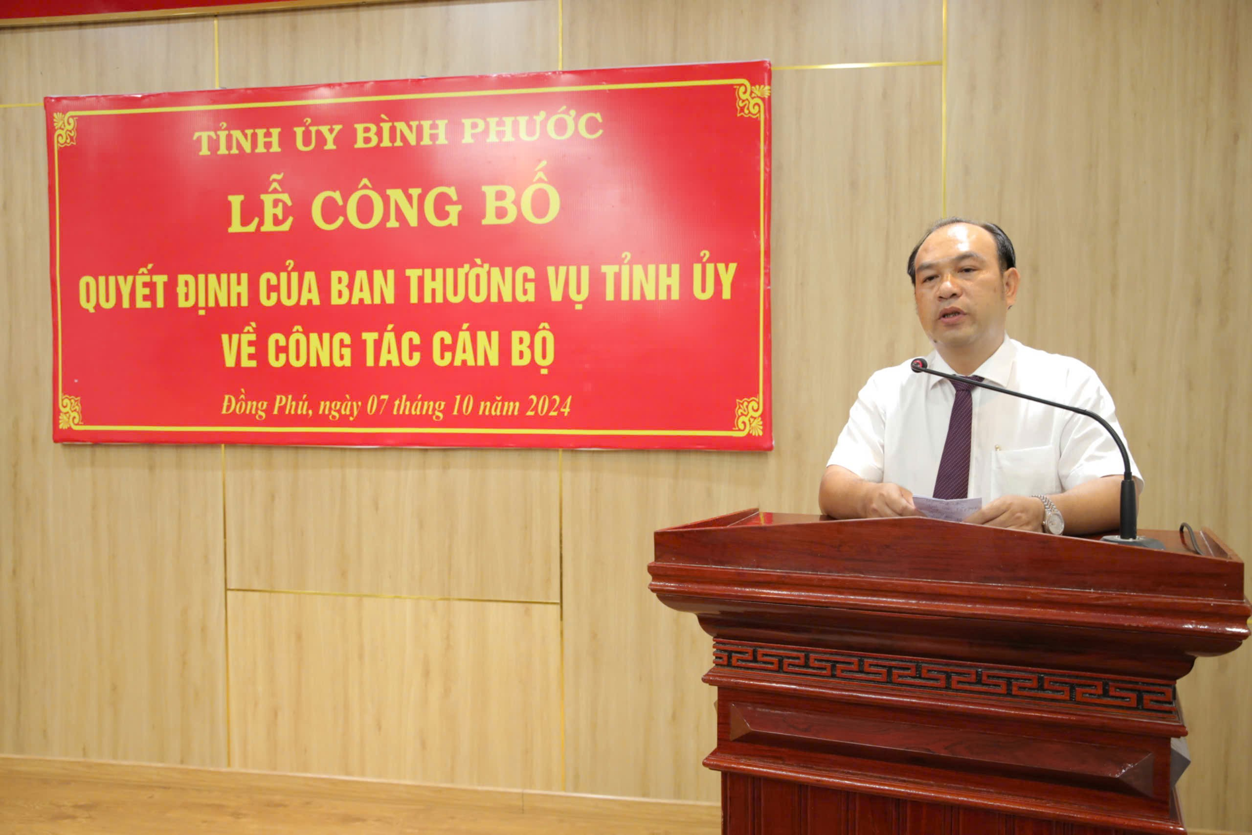 Tại buổi lễ, Bí thư Tỉnh ủy Nguyễn Mạnh Cường đã trao quyết định của Ban Thường vụ Tỉnh ủy điều động ông Nguyễn Tấn Hùng, Tỉnh ủy viên, Giám đốc Sở Giao thông - Vận tải đến nhận công tác tại Huyện ủy Đồng Phú, chỉ định tham gia Ban Chấp hành, Ban Thường vụ và giữ chức vụ Bí thư Huyện ủy Đồng Phú nhiệm kỳ 2020-2025.