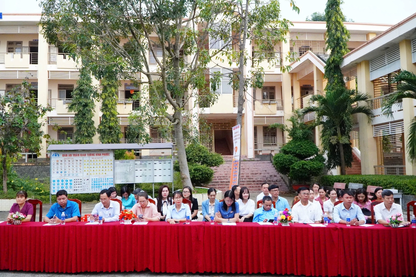 Lãnh đạo các cơ quan, ban, ngành, đoàn thể và cán bộ, giáo viên Trường THCS-THPT Đồng Tiến dự lễ