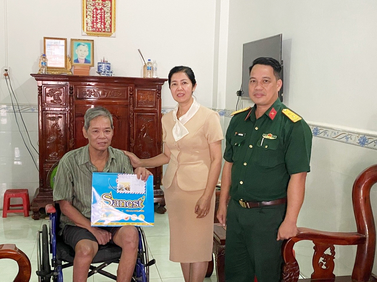 Ban Vận động quần chúng liên ngành huyện thăm, tặng quà thương binh Đào Văn Thanh