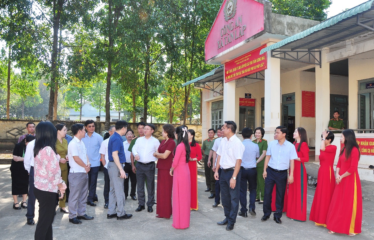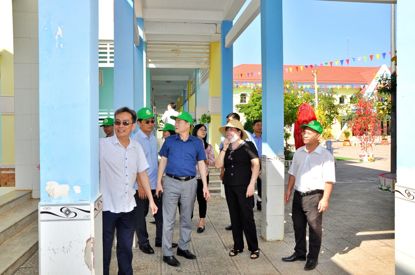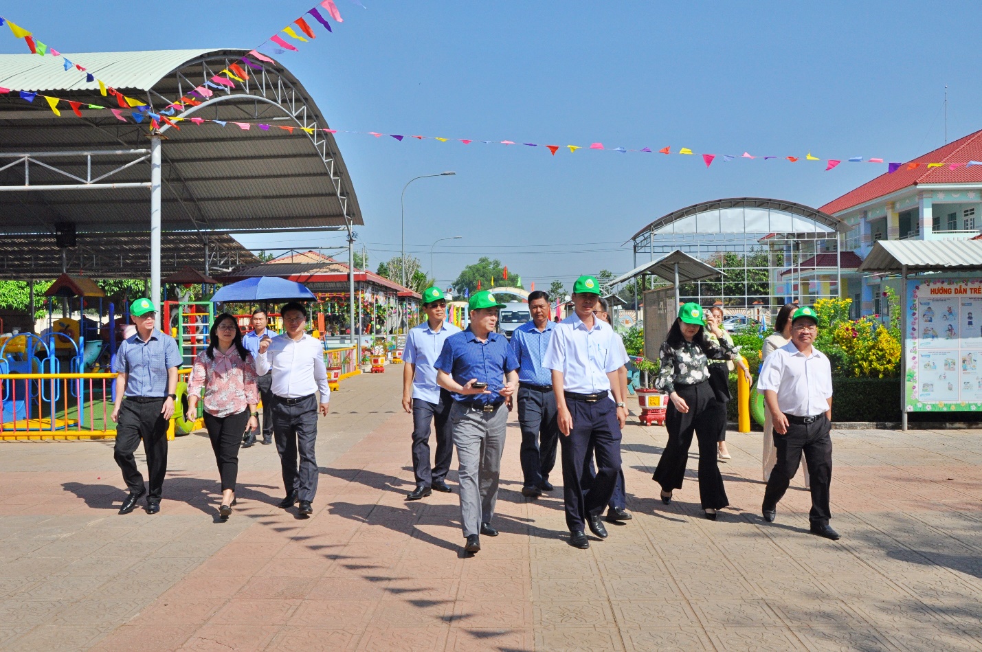 Đoàn khảo sát tại Trường Mầm non Tân Tiến và Trường THPT Đồng Phú