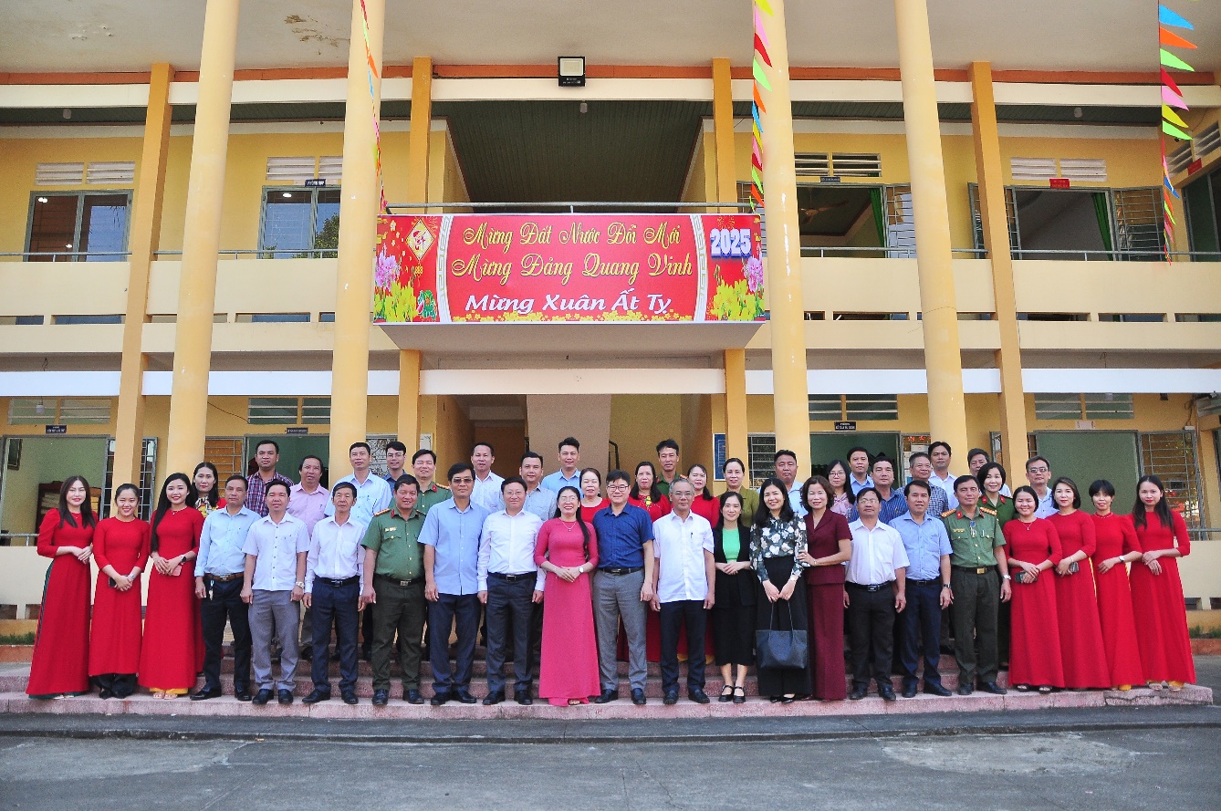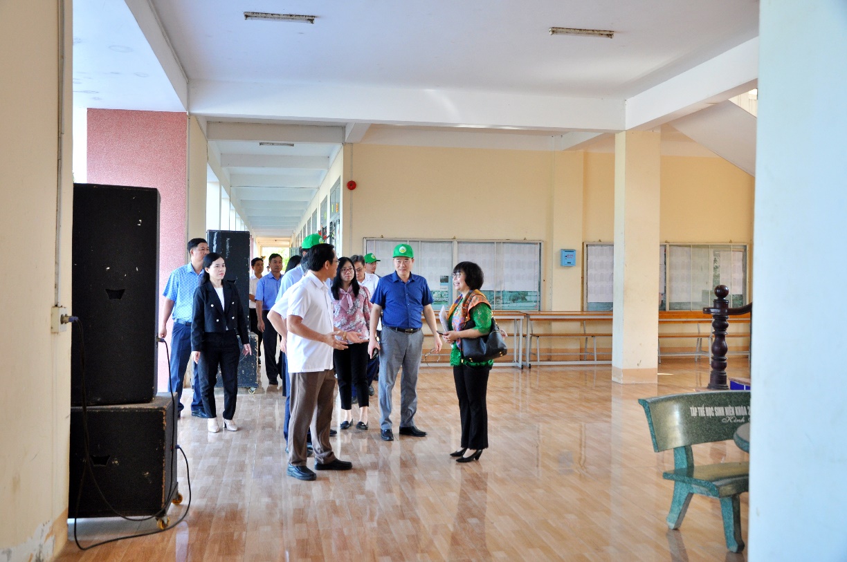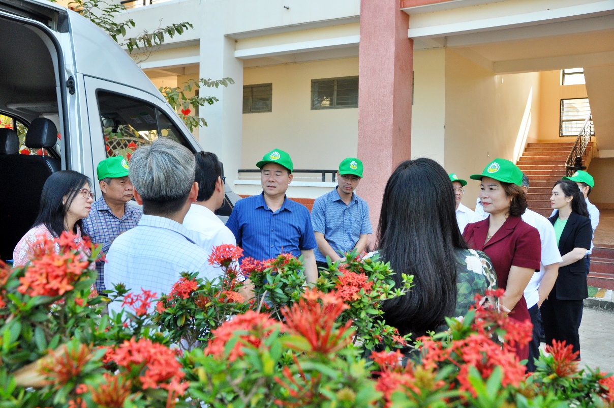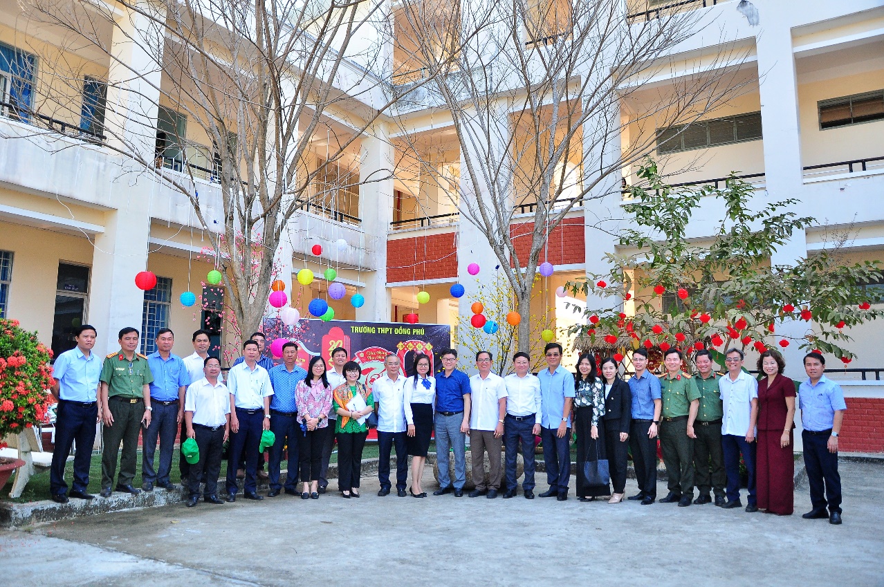 Đoàn khảo sát tại Trường Mầm non Tân Tiến và Trường THPT Đồng Phú