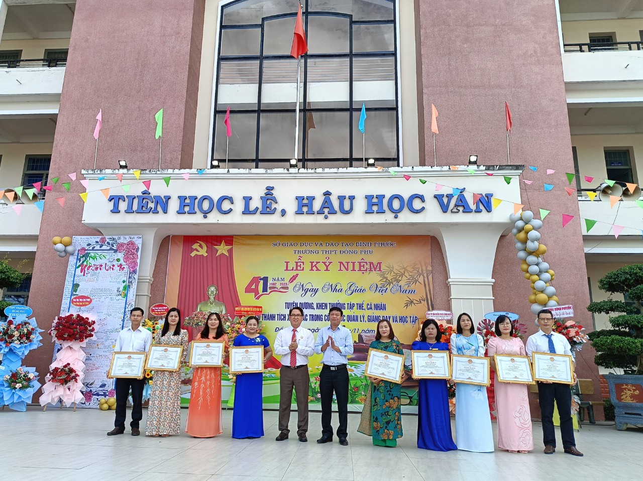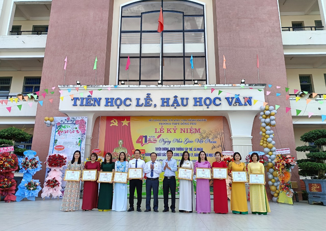 Dịp này, tập thể trường THPT Đồng Phú vinh dự nhận bằng khen của Bộ GD&ĐT; 5 cán bộ, giáo viên nhận kỷ niệm chương vì sự nghiệp giáo dục. Ngoài ra, nhiều tập thể, cá nhân có thành tích xuất sắc trong năm học 2022-2023 được tuyên dương và nhận bằng khen, giấy khen, danh hiệu chiến sĩ thi đua của các cấp, các ngành.